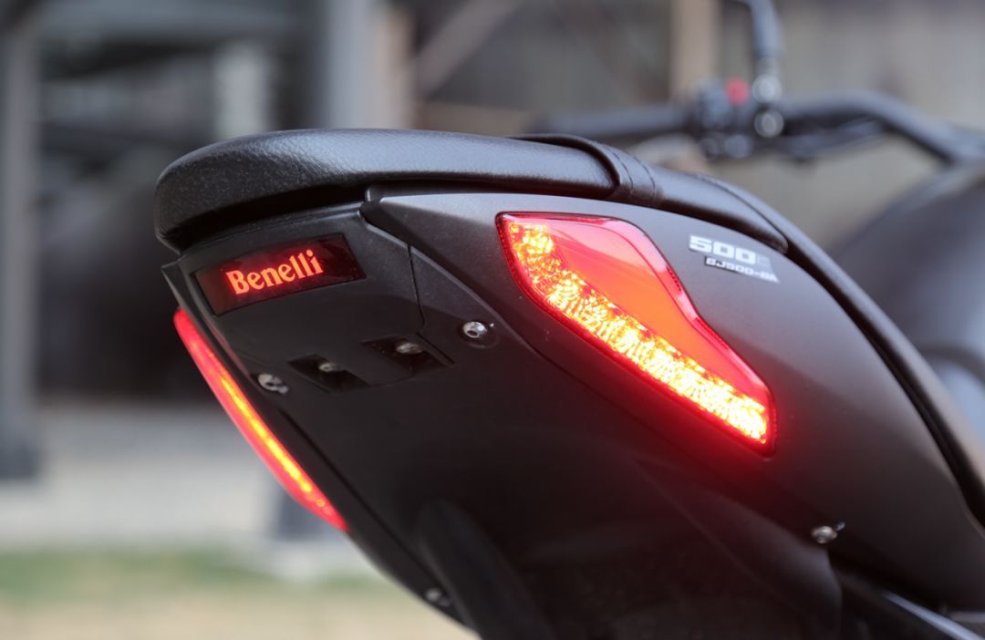 502C的燈光系統(tǒng)頗有特色,正面的大燈采用仿生設(shè)計,LED燈帶勾勒出一副臉部的輪廓,說它像科幻人物也好,還是像孫大圣也罷,起碼個性化和辨識度是到位了。尾燈為分離式布局,除了左右各排列一組剎車燈之外,中間還有一個小尾燈,點亮之后是Benelli的LOGO,無形中提升了整車檔次。后轉(zhuǎn)向燈為了造型位于后牌照架上,為縱向排列,全車燈具為LED光源。