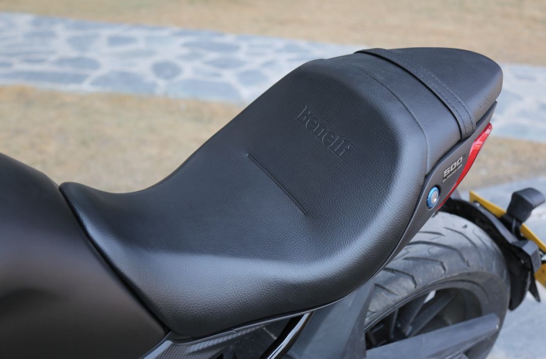 502Cruiser車輛曲線輪廓圓潤典雅,有著同級別中少有的高級感。有著20.5L容積的寬大油箱帶來非常厚重的視覺感受,與上翹的短尾設(shè)計帶來的運動感形成鮮明對比,整車視覺重心向中間靠攏,一定程度上掩飾了502 C 1590mm的軸距。