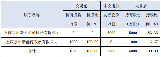 本次增資完成后,宗申氫能源的股權(quán)結(jié)構(gòu)如下: