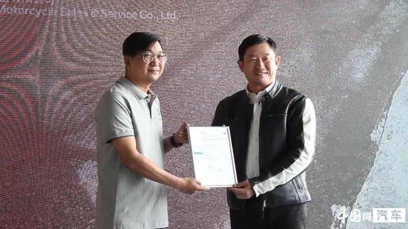 (BMW摩托車(中國(guó))區(qū)總監(jiān)展飛為天津大友寶摩托車銷售服務(wù)有限公司頒發(fā)經(jīng)銷商授權(quán)證書)