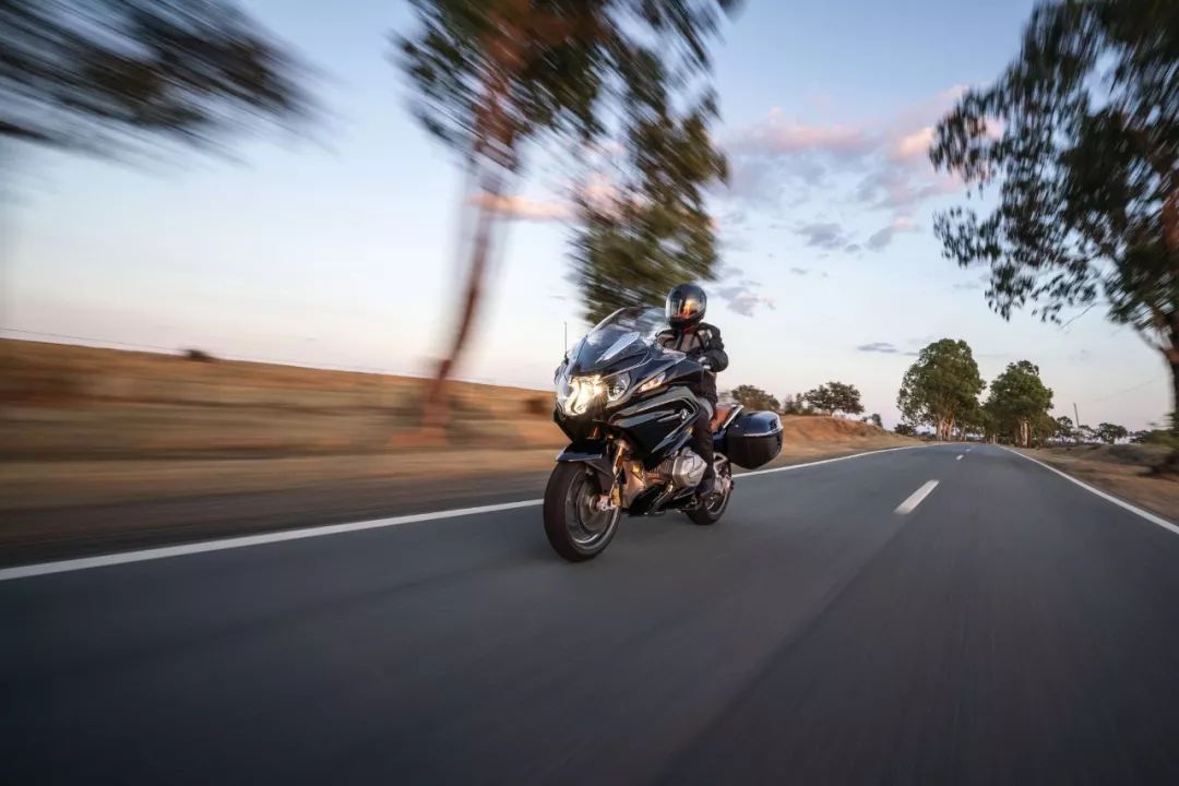 下面的圖片,是已經(jīng)加裝了部分 Option 719 系列原廠改裝件的 2019' R1250RT 原廠定制/改裝版,在路上飛馳的場景。