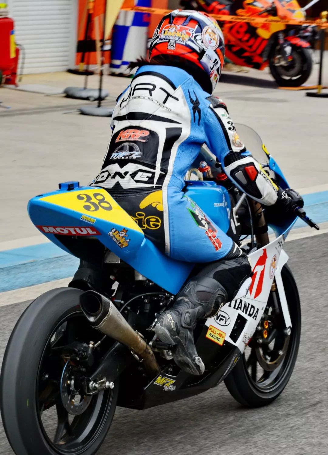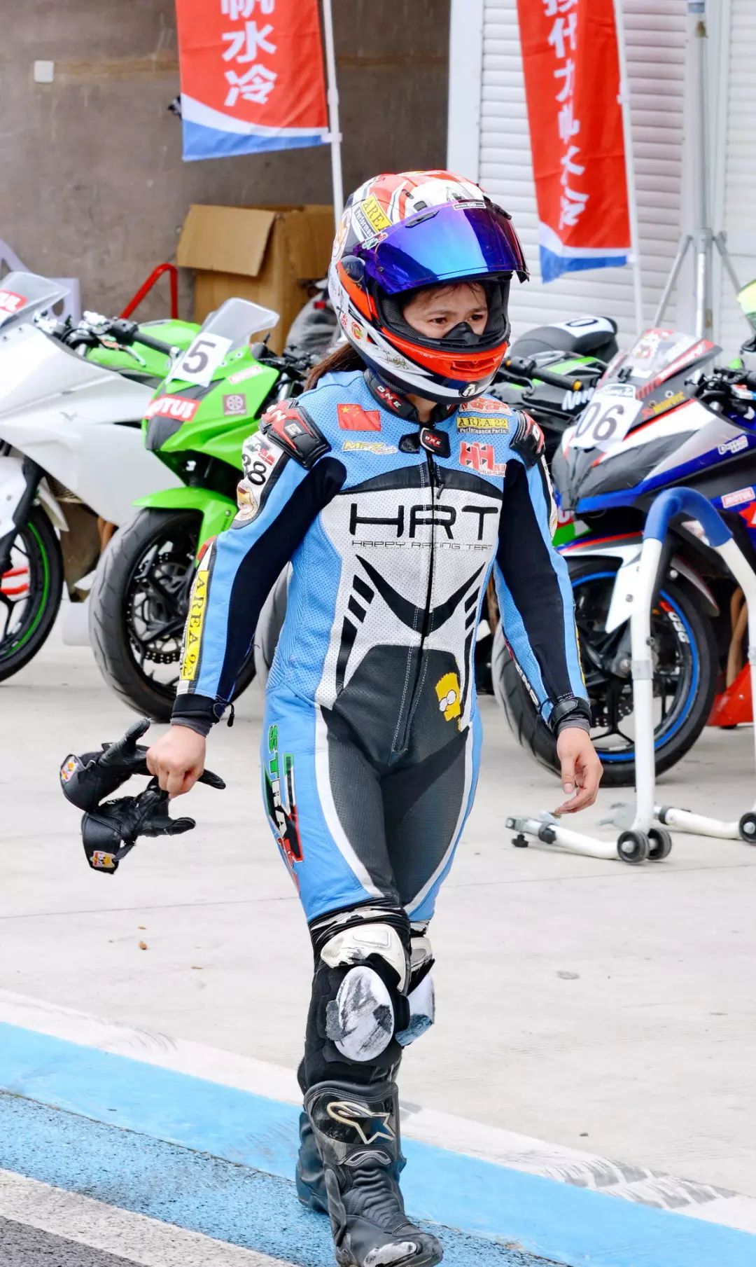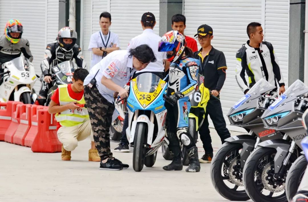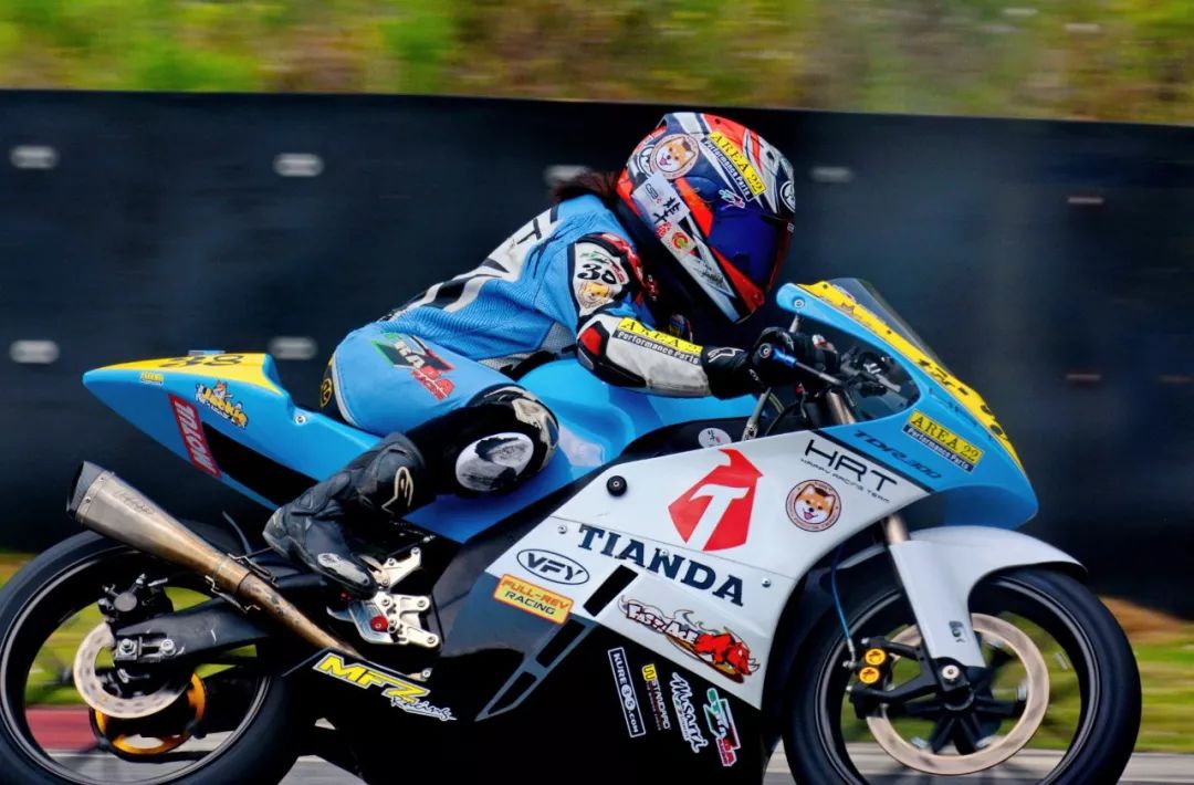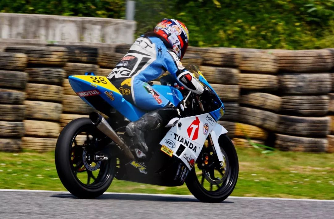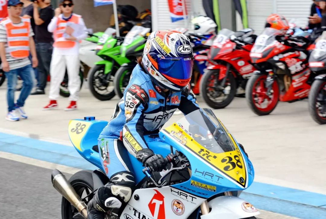 CRRC 250 cc 級(jí)別,駕駛 38 號(hào)車、HRT 樂(lè)速車隊(duì)的譚燕杰,是貴陽(yáng)站該級(jí)別比賽中的唯一女車手,堪稱萬(wàn)綠叢中一點(diǎn)紅。