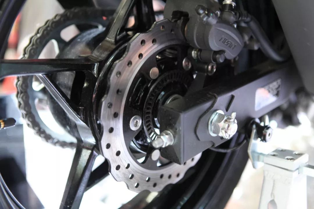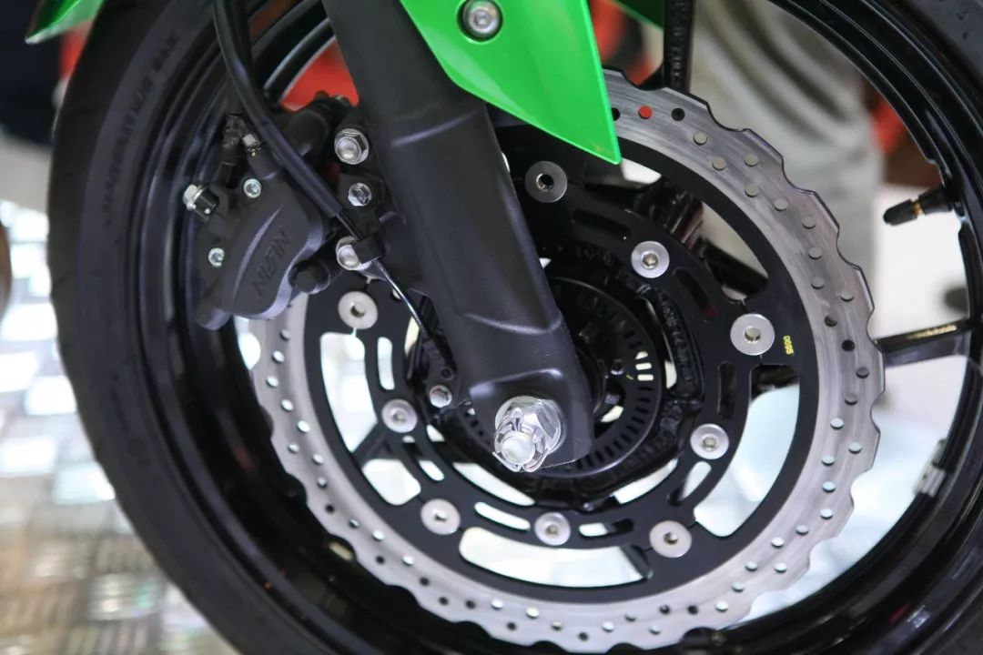 懸掛系統(tǒng)與車架剛性很匹配,總體來說設(shè)置得比較硬,更多地傾向于激情飛馳。Z400前輪裝配了直徑41mm的正立式前叉,管徑比Z300粗了4mm;后部輔以底部連接式Uni-Trak單筒減震器;行程分別是120mm和130mm。對應(yīng)于更強(qiáng)的動力性能和加速能力,Z400的制動系統(tǒng)同樣作了強(qiáng)化,前輪安裝了310mm的半浮動盤,這是同級別競爭對手中最大直徑的制動盤;后制動盤的直徑為220mm,配上雙活塞卡鉗;再配上防抱死制動系統(tǒng),讓騎手在各種路況下,都能快速安全地收住飛奔疾馳的腳步!