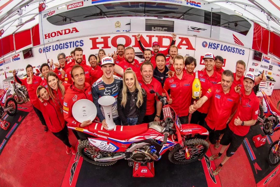 駕駛 243 號車、HRC 工廠車隊(duì)的蓋沙(Tim Gajser),以穩(wěn)健的發(fā)揮,不斷對前車施加壓力,最終奪得了 MXGP 級別兩節(jié)比賽的勝利,一掃對上一周、第五站意大利 Lombardia 比賽時(shí)摔車的陰霾。