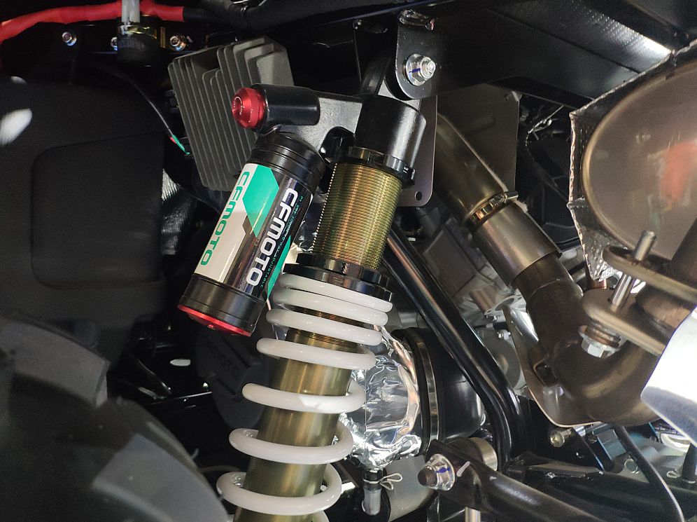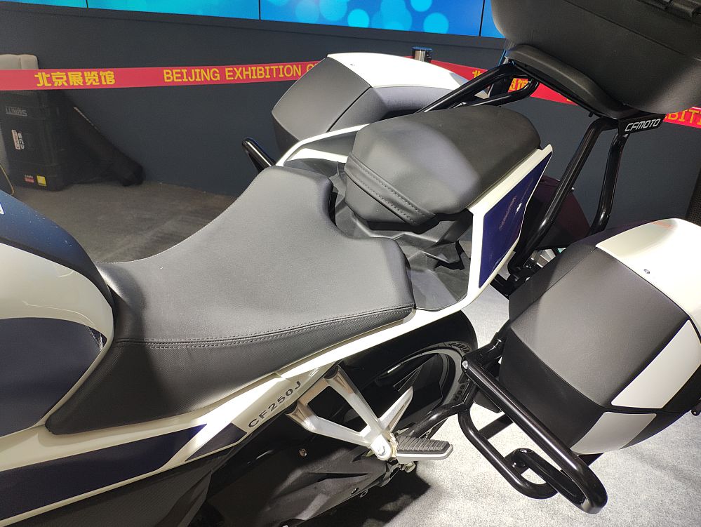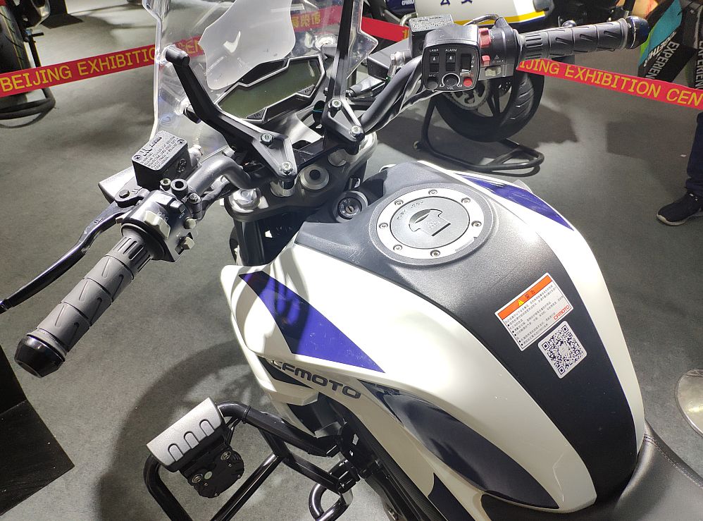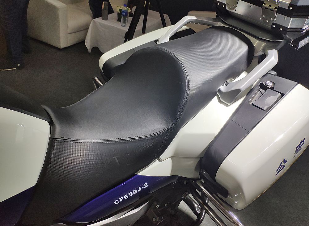 最引人注目的當(dāng)然是中國武警北京總隊國賓護(hù)衛(wèi)隊的專用摩托車——春風(fēng)650G國賓車。先來說說CF650G國賓車與我們熟悉的民用版有哪些主要區(qū)別吧。霸氣十足的紅白涂裝、燈具和威嚴(yán)的國徽肯定是第一眼就能發(fā)現(xiàn)的。車把搭載的互聯(lián)通訊設(shè)備,通過移動信號的傳輸,可以實(shí)現(xiàn)集群全雙功通話和北斗定位功能,車頭處裝備的高清攝像頭可通過移動信號實(shí)時回傳到指揮中心,為統(tǒng)一指揮和調(diào)控提供便利。另外坐墊也是一大亮點(diǎn),這可不是普通的坐墊,內(nèi)置了春風(fēng)創(chuàng)新專利“內(nèi)置氣囊可升降調(diào)節(jié)”技術(shù),可根據(jù)護(hù)衛(wèi)隊員們的身高和駕駛習(xí)慣讓座高在780mm-810mm的范圍內(nèi)進(jìn)行調(diào)節(jié),提供更理想的駕駛感受?;蛟S有眼尖的朋友發(fā)現(xiàn)了國賓車為什么沒有采用新款民用版上的大液晶儀表,這是因?yàn)镃F650G國賓車的公告在2014年時就已經(jīng)確定,作為特種車輛是不能隨意更改參數(shù)配置的,那么國賓車就不能享受到配置的更新了嗎?別著急,我們先賣個關(guān)子,一會再說這個......