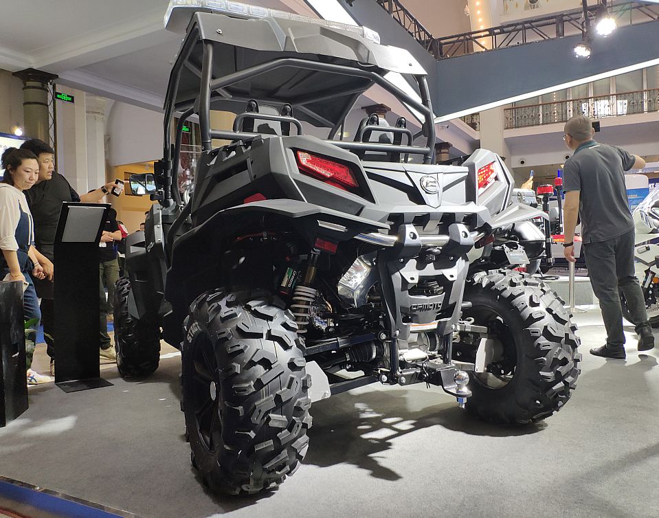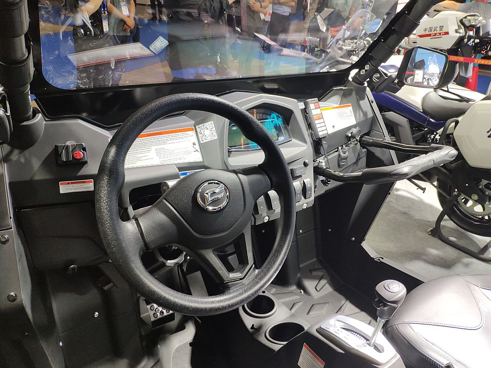 但小編還是立馬找到了此次要一探究竟的目標(biāo),春風(fēng)動力的展臺位于十幾個展區(qū)的中軸線位置上,國賓車和警用摩托車的氣場并不亞于室外的特種汽車,吸引了許多人駐足圍觀拍照,沒錯,就是它了!