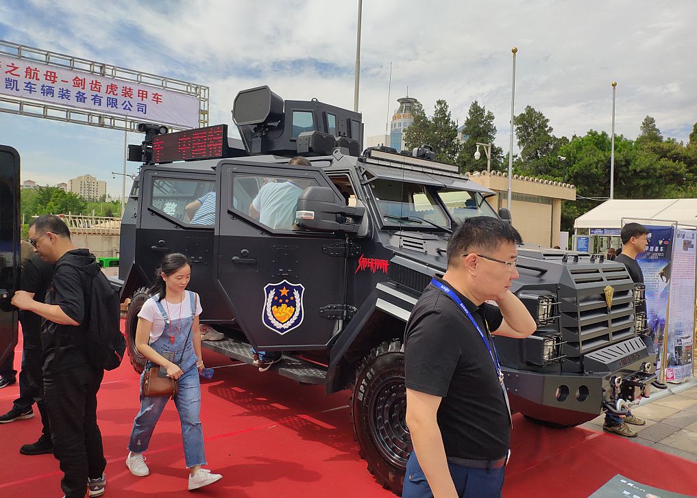 進(jìn)入展區(qū)大門后,映入眼簾的外場大空地上是各式各樣的特種車輛,有大家比較熟知的劍齒虎、恐狼以及一大堆叫不出名的防暴車、運(yùn)輸車、指揮車等特種車輛,看著這些動不動就重達(dá)幾噸,搭載了V8、V12的大家伙,能這么近距離觀看還是蠻有意思的,過完了眼癮繼續(xù)往前走便到了室內(nèi)展區(qū)。室內(nèi)展館聚集了五花八門的警用裝備和警具、防暴器械、智能安保系統(tǒng)等,著實(shí)讓人眼花繚亂。