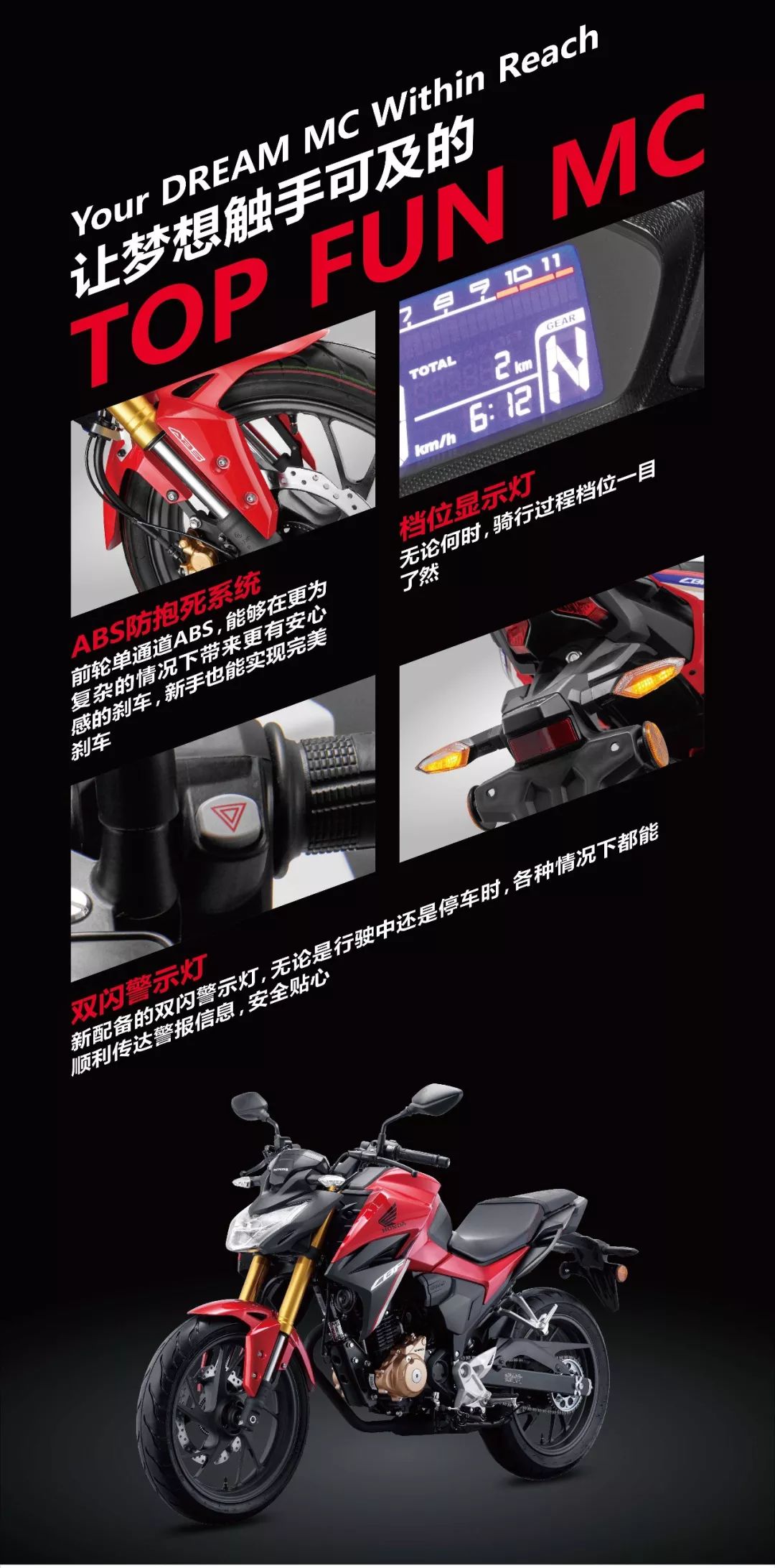 2019年3月8日,國IV CBF190R ABS版正式發(fā)布。該款摩托車是由新大洲本田摩托有限公司(簡稱“新大洲本田”)生產(chǎn)。CBF 190R作為一款入門級街車,憑借出色的外觀與動力,在國內(nèi)摩托車領(lǐng)域有著極高的銷量,隨著國內(nèi)對摩托車排放標(biāo)準(zhǔn)的日益嚴(yán)苛,新大洲本田推出了符合國IV排放要求的CBF190R ABS。