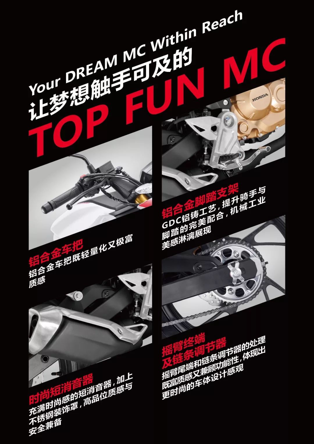 新大洲本田CBF 190R在國內(nèi)已上市多年,出色的外觀和發(fā)動機(jī)性能得到了眾多消費者的支持。此次發(fā)布的國IV CBF190R還增加了更多實用性的功能,在車身輕量化上采用了鋁合金車把和腳踏,改變了排氣管造型,增加了車輛離地間隙等。