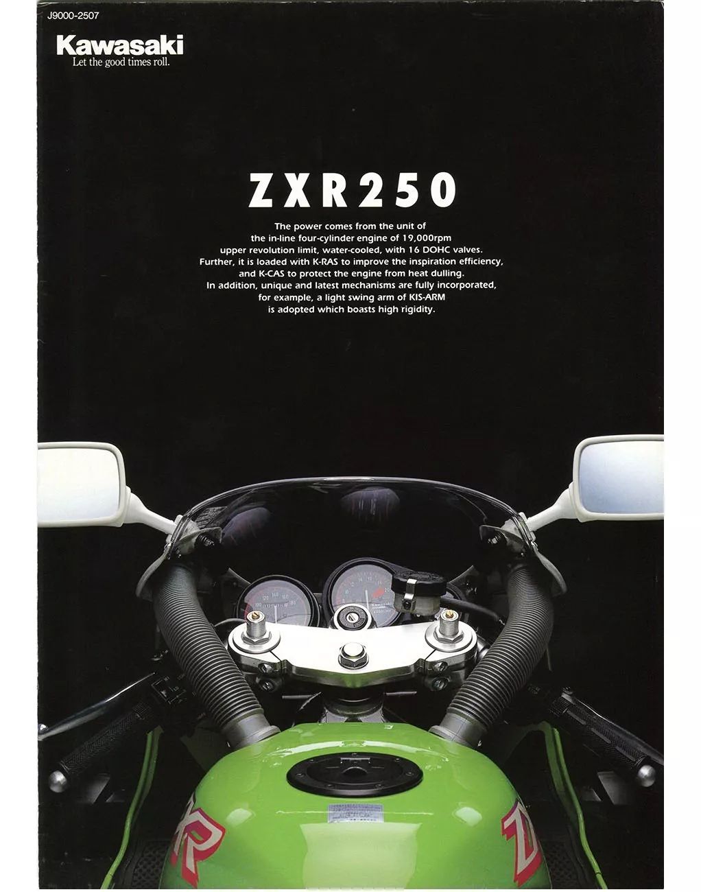 在競(jìng)爭(zhēng)對(duì)手紛紛推出了入門(mén)級(jí)的小型直列四汽缸 250 cc 跑車(chē)之后,跚跚來(lái)遲的 Kawasaki 終于在 1989 年,發(fā)布了 ZXR250、ZXR250R(SP 版),工廠編號(hào) ZX250A(SP 版為 ZX250B)。在應(yīng)對(duì)其他三大制造商挑戰(zhàn)的同時(shí),也為自己當(dāng)時(shí)的產(chǎn)品線從 ZXR750/ZXR-7、ZX-4,補(bǔ)上了日本本土市場(chǎng)的最后一個(gè)缺口。