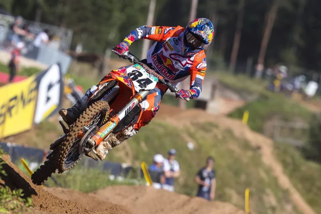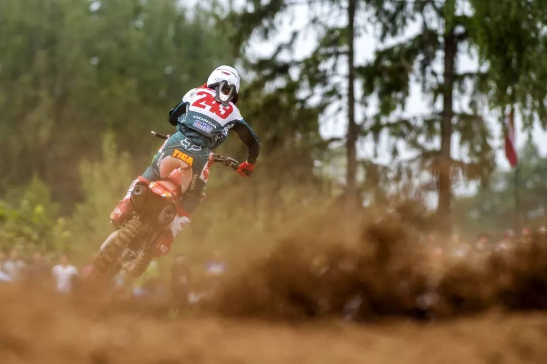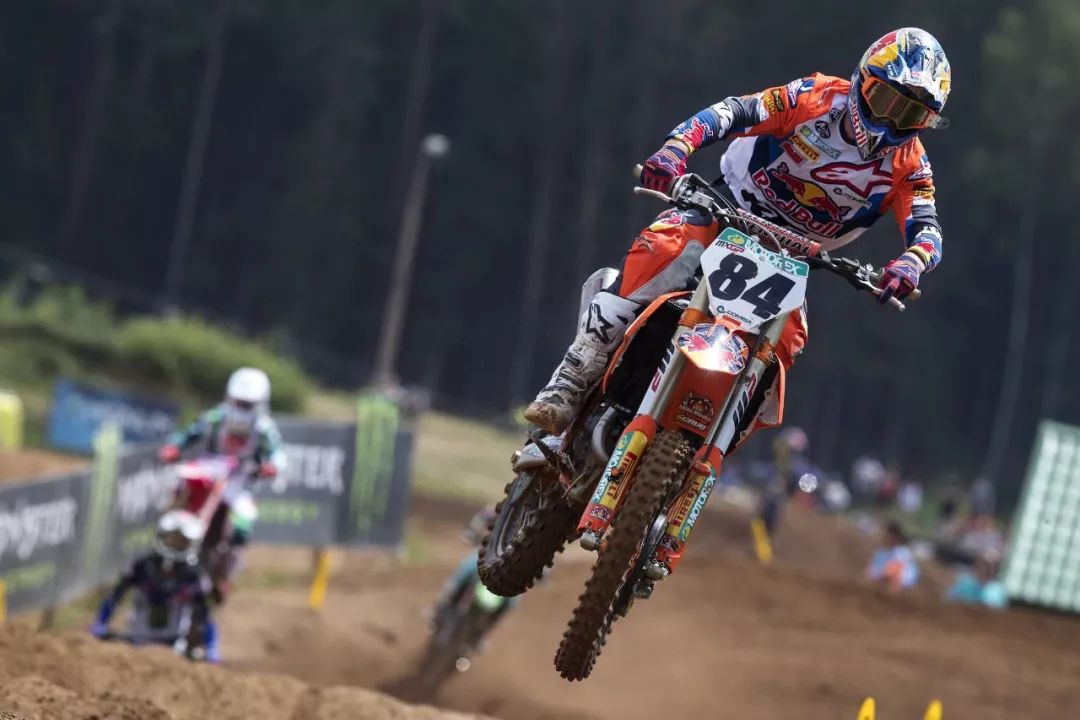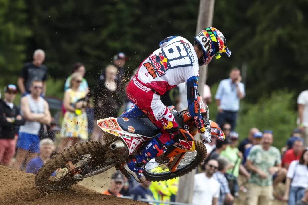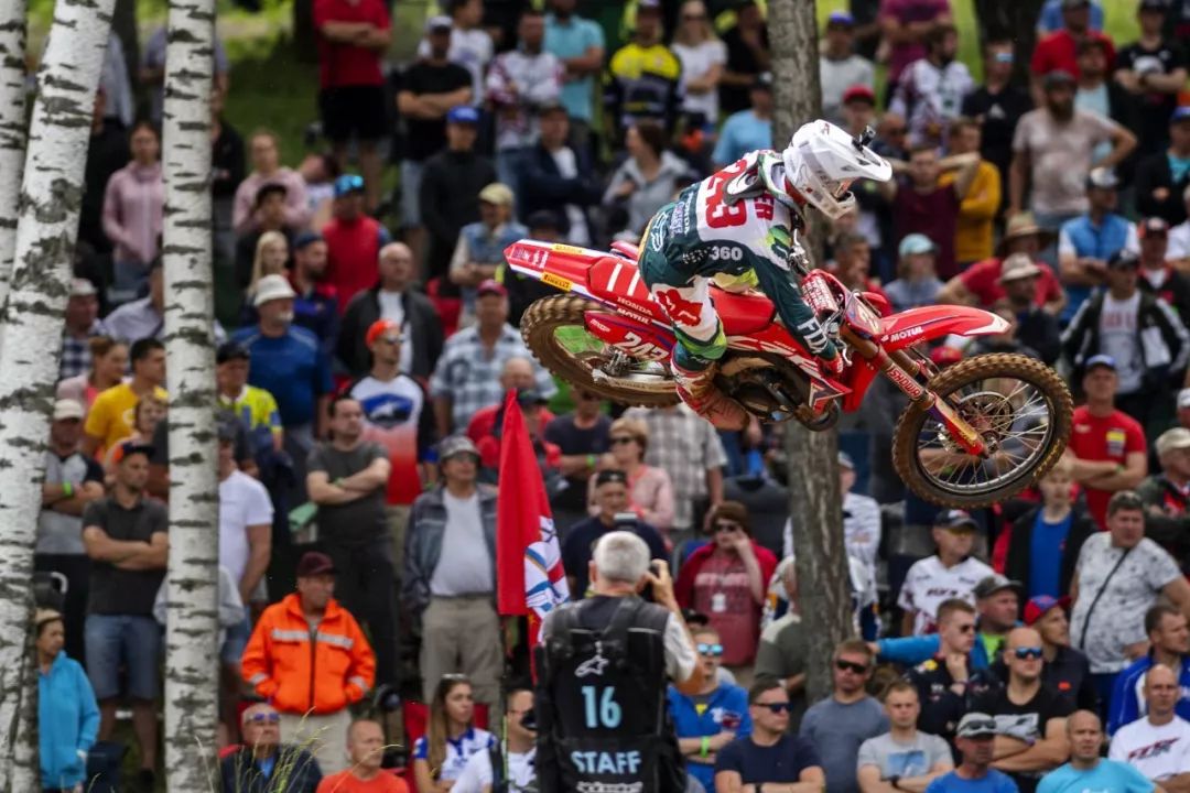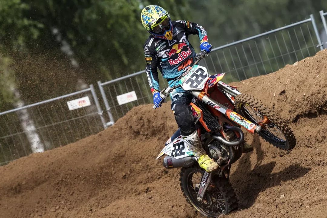 MX2 級別,延續(xù)著此前的氣勢,西班牙車手普拉多(Jorge Prado)奪得了兩節(jié)比賽的勝利。他在今年已經(jīng)進(jìn)行的九站比賽中,除了英國站因為受傷而缺席之外,其余的八個分站共十六節(jié) MX2 級別的比賽,他已經(jīng)拿下了十五個冠軍、一個亞軍,蟬聯(lián)冠軍的勢頭看似無法阻擋。