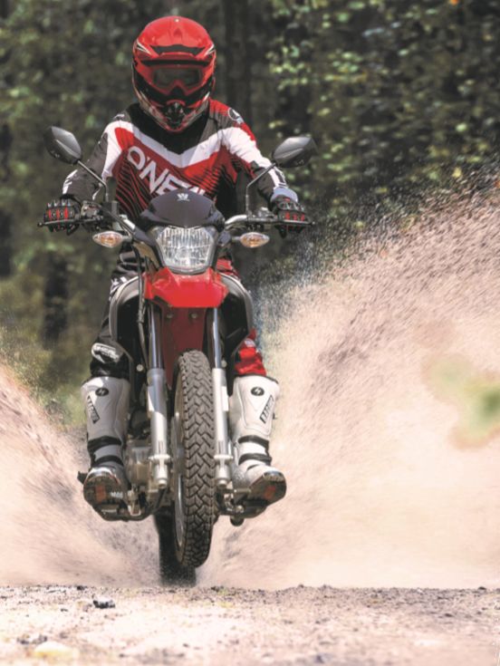 NK150有著非??褚暗耐庥^,寬大的越野前擋泥瓦、加寬手把、一體式坐墊、長(zhǎng)行程減震、高離地間隙、輻條輪轂、兩用輪胎等元素具有鮮明的越野風(fēng)格,散發(fā)出強(qiáng)烈的野性氣息,同時(shí)對(duì)它的通過(guò)性能不敢小覷。