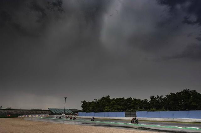 惡劣天氣下的比賽讓一切都變得不可預(yù)測。第八圈的 T10,已經(jīng)取得領(lǐng)先位置的洛伊斯摔車退出,由于隊友馬克(V.D. Mark)在排位賽的時候發(fā)生嚴重意外導(dǎo)致受傷而缺席了比賽,孤軍出戰(zhàn)、是 Yamaha 工廠車隊唯一希望的洛伊斯,讓車隊被迫早早關(guān)掉了電視屏幕。隨后,當時跑在第三位、杜卡迪 MotoGP 測試車手皮洛(Michele Pirro)也在同一個地方摔倒。