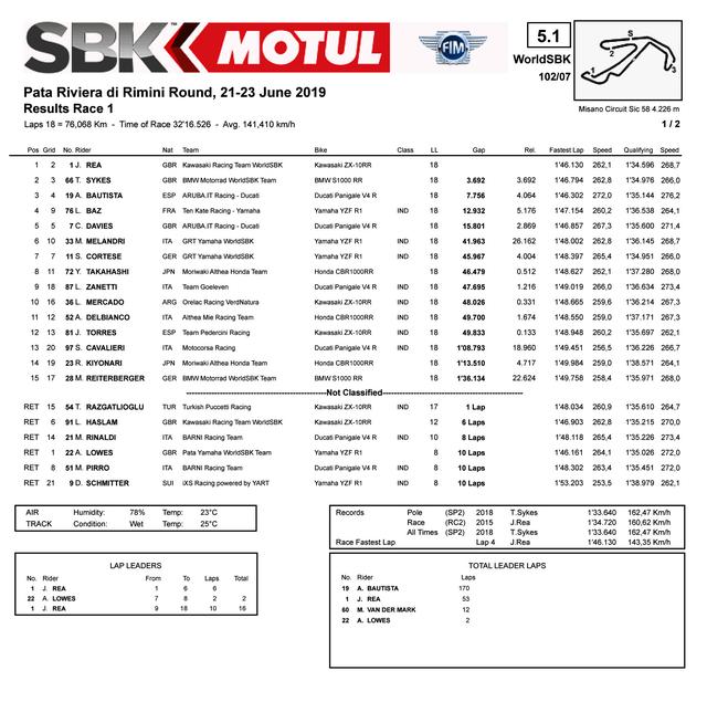 2019 WSBK 意大利米沙諾站:WSB 第一節(jié)比賽
