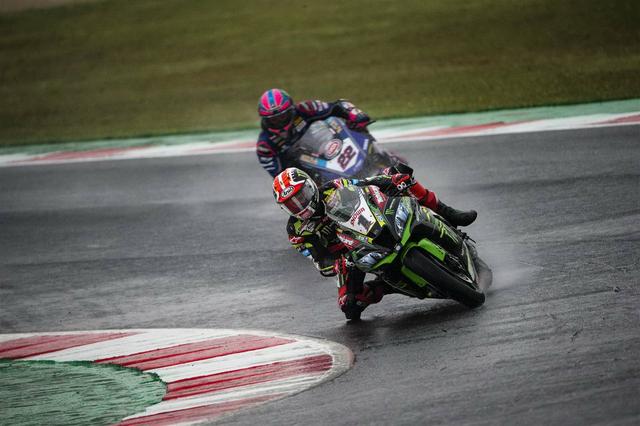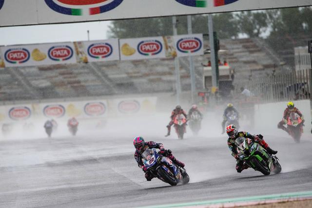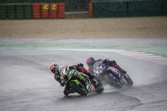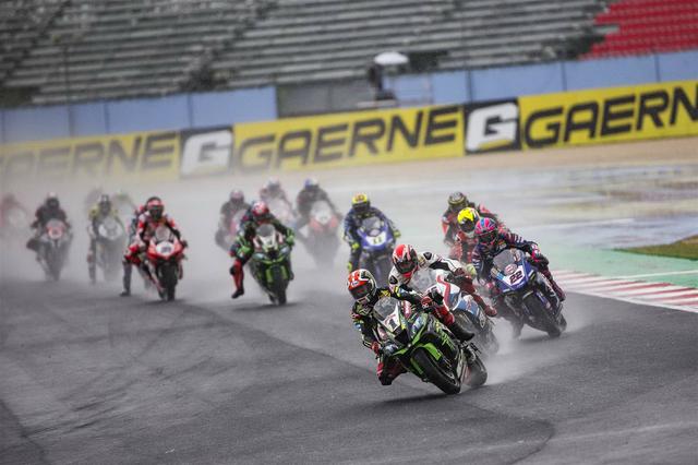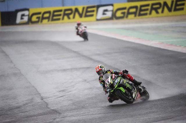 再度起步之后,雷亞(Jonathan Rea,Kawasaki)率先帶頭,洛伊斯(Alex Lowes,Yamaha)、賽克斯(Tom Sykes,寶馬)、戴維斯(Chaz Davies,杜卡迪),以及捌弟(Alvaro Bautista,巴迪斯塔,杜卡迪)、哈斯蘭(Leon Haslam,Kawasaki)依次隨后而來。雷電交加、天色陰暗,且夾雜著狂風暴雨,讓比賽現(xiàn)場看起來有點可怕,但 WSBK 的車手們在繼續(xù)著他們的戰(zhàn)斗。