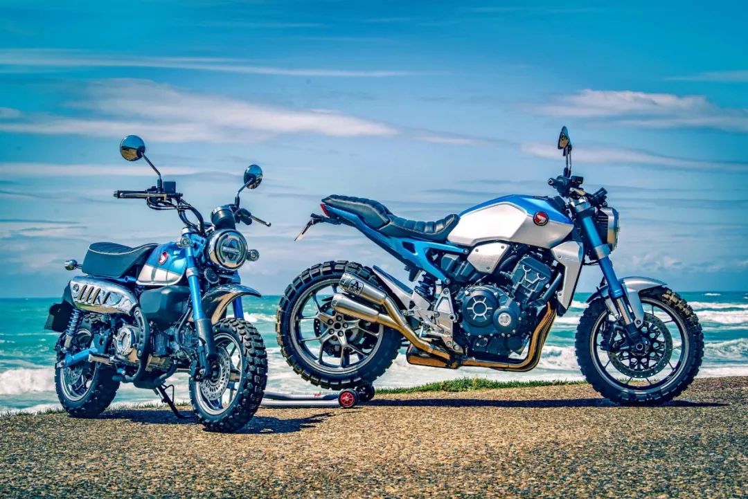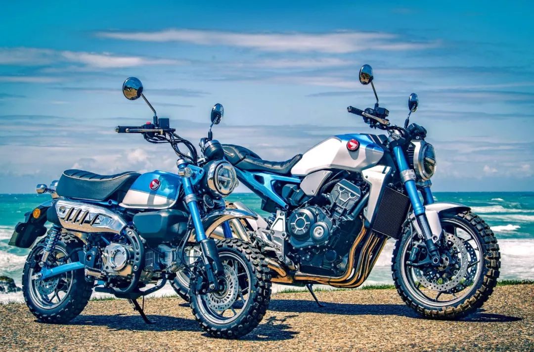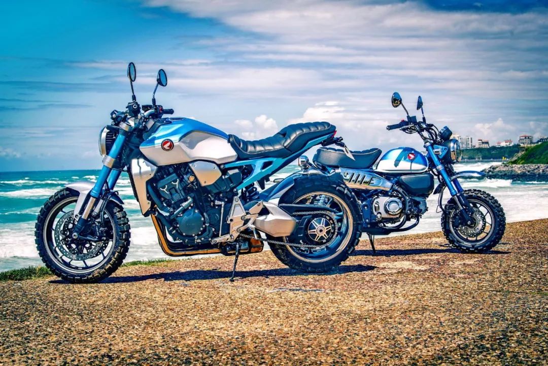 下面的圖片,兩個(gè)以 CB1000R 作為基礎(chǔ)車(chē)、采用了 Monkey “ 猴子 ” 為主題的定制款式。模仿藍(lán)色版 Monkey “ 猴子 ” 125 的作品來(lái)自法國(guó),名為 CB1000R ‘ Monkey 1000R ’。而模仿黃色版 Monkey “ 猴子 ” 125 的作品、則是來(lái)自西班牙的摩托車(chē)經(jīng)銷(xiāo)商 Mallorca Motos,作品的名稱(chēng)是 ‘ Monkey Kong ’。