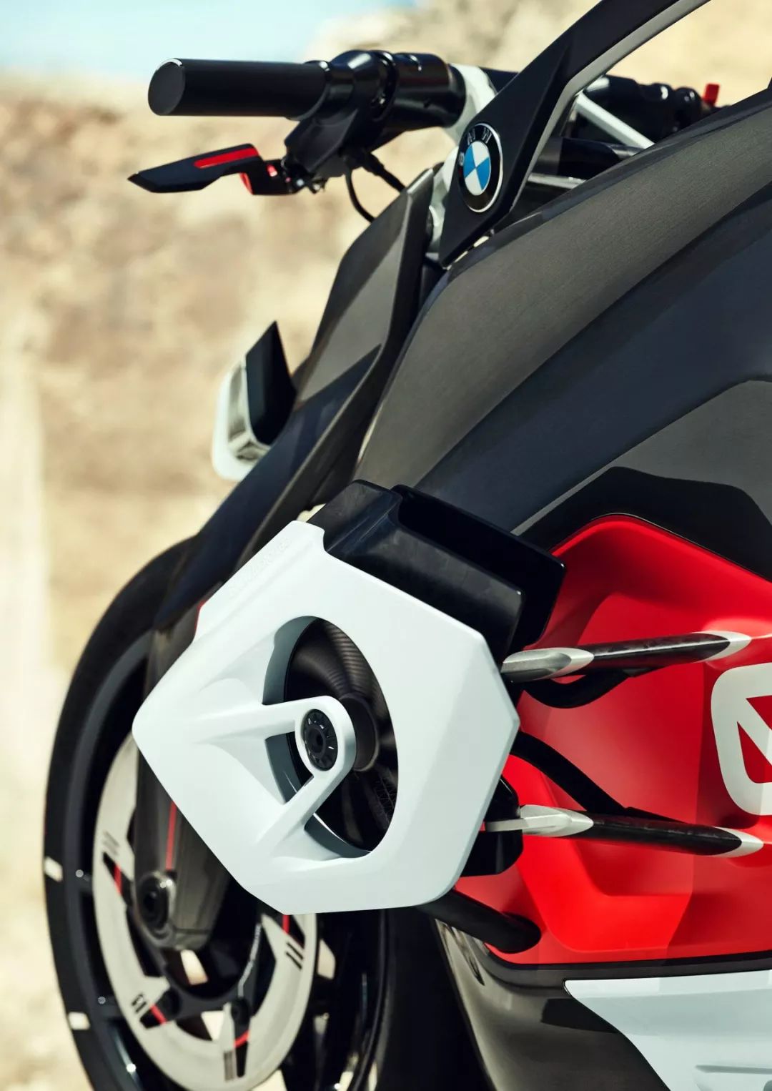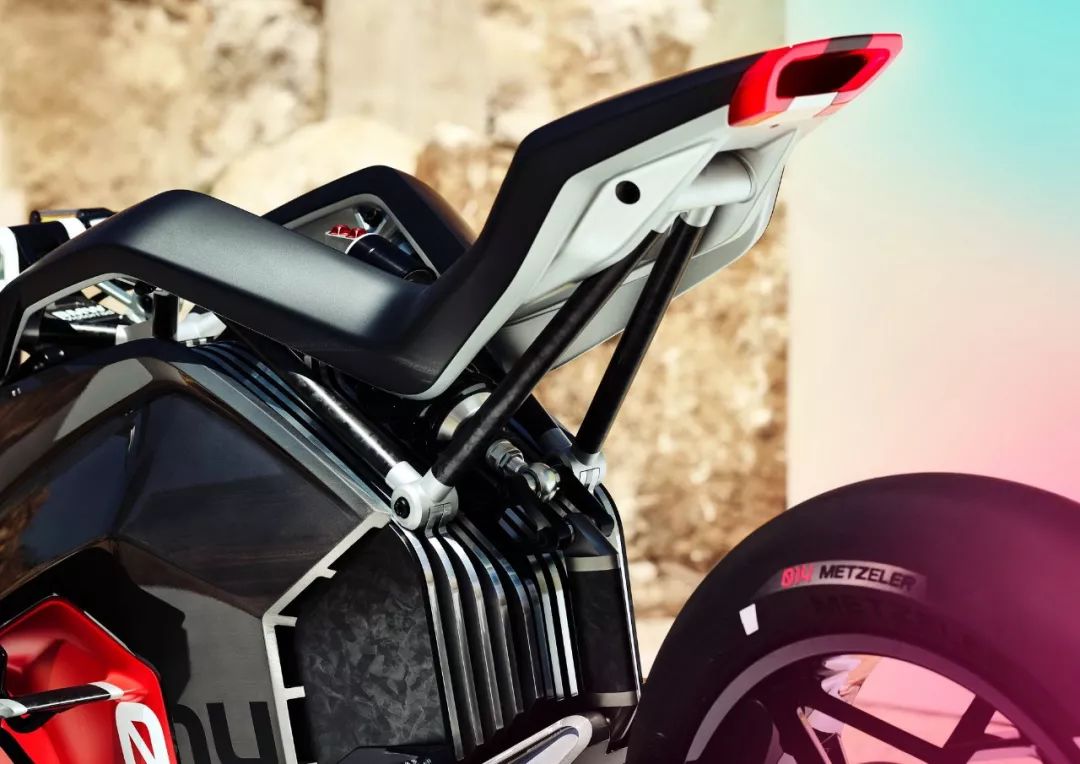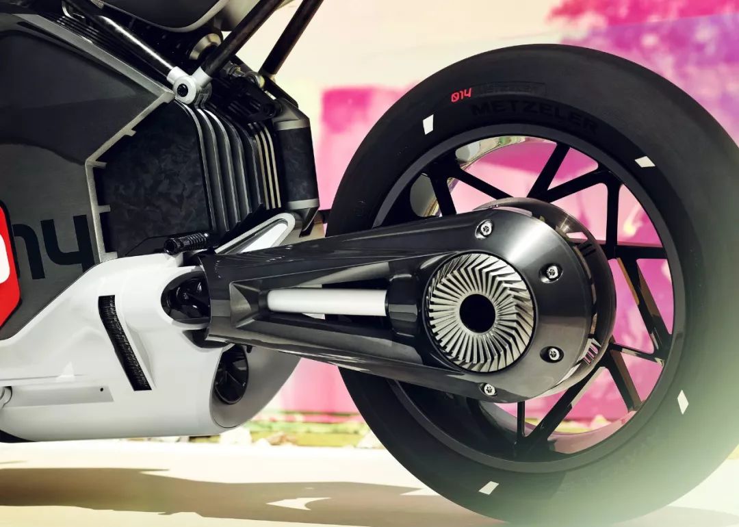 取代了以前的內(nèi)燃式發(fā)動機(jī),Vision(參數(shù)|圖片) DC Roadster 概念現(xiàn)在有一個垂直安裝、縱置定向的電池組。出于冷卻目的,車體下方有兩個向外側(cè)突出的部件,該部件的作用是冷卻肋、并集成了通風(fēng)機(jī),此舉可讓冷卻組件被放置在迎面而來的氣流中。其外觀的視覺上,正如寶馬 R 32(寶馬摩托在 1923 年時候的車型)的 Boxer 拳師發(fā)動機(jī)一樣,正是透過了這種巧妙的結(jié)構(gòu),從而讓 Vision DC Roadster 概念在視覺上呼應(yīng)了寶馬摩托的傳統(tǒng)印象,同時在技術(shù)上又向前邁了一步。