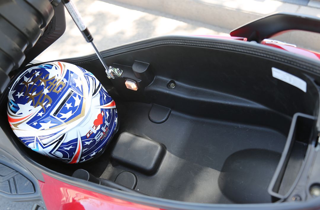 JOYMAX Z 300配置方面還是比較豐富的,實(shí)用性方面表現(xiàn)最突出應(yīng)該是超大的座桶空間,繼承了CRUiSYM 300的優(yōu)點(diǎn),可以放下兩頂全盔,這樣大容量的座桶在這個(gè)價(jià)位的大踏板車型中并不多見。此外,在中控右側(cè)的儲(chǔ)物盒內(nèi)配有USB接口,同時(shí)儲(chǔ)物空間比較充裕,無論是橫豎放置都可以放下6.5英寸的手機(jī)。