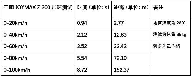 在加速測(cè)試環(huán)節(jié),JOYMAX Z 300的表現(xiàn)完全可以用非常優(yōu)異來形容,0-100km/h加速成績(jī)達(dá)到8.72秒,在300級(jí)別大踏板中可以說名列前茅,說實(shí)話有些出乎我的意料??墒亲屑?xì)一想,JOYMAX Z 300離合器接合的時(shí)機(jī)比較早,在加速過程中在3000轉(zhuǎn)左右就開始咬合,比大部分踏板車都要早,再加上非常強(qiáng)的低扭,做出這樣的成績(jī)倒也不奇怪了。通過觀察加速曲線,也可以看出整段加速過程非常線性,發(fā)動(dòng)機(jī)從3000轉(zhuǎn)開始發(fā)力,出力也很平順。這樣的調(diào)校在城市環(huán)境中應(yīng)對(duì)頻繁的起步十分有利。