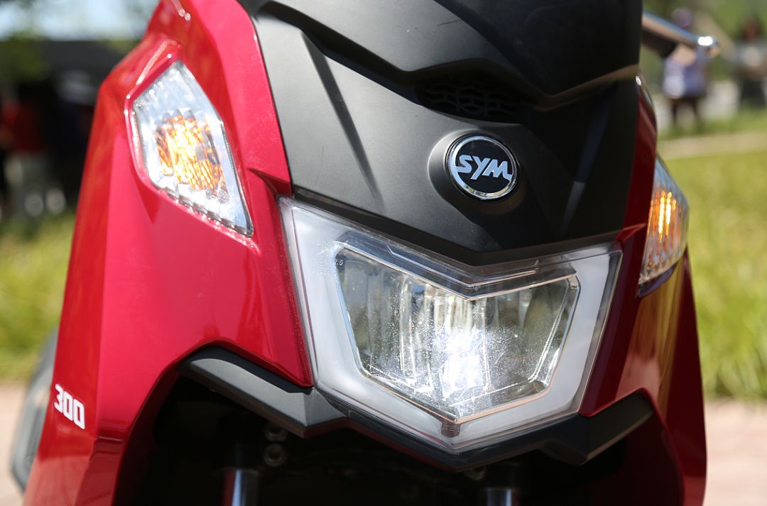 JOYMAX Z 300的外觀部分有些難以評(píng)價(jià),畢竟這個(gè)問題太過主觀,各花入各眼。不過以筆者的審美水平,并不是非常能接受這樣的外觀設(shè)計(jì)。JOYMAX Z 300的外觀可以說是創(chuàng)新且大膽的,與CRUiSYM 300運(yùn)動(dòng)且犀利的外觀造型完全是兩種風(fēng)格,中央是帶有日行燈帶的盾形的反射式大燈,轉(zhuǎn)向燈分散排布在斜上方。車頭的風(fēng)格非常簡(jiǎn)潔,沒有CRUiSYM 300那么多的折線和線條元素,遠(yuǎn)處看你甚至感覺車頭是平的,略微給人一種“憨憨”的感覺。車身后半部分的走勢(shì)更加流暢,整體上揚(yáng)的輪廓看起來比前半部分更具運(yùn)動(dòng)感。