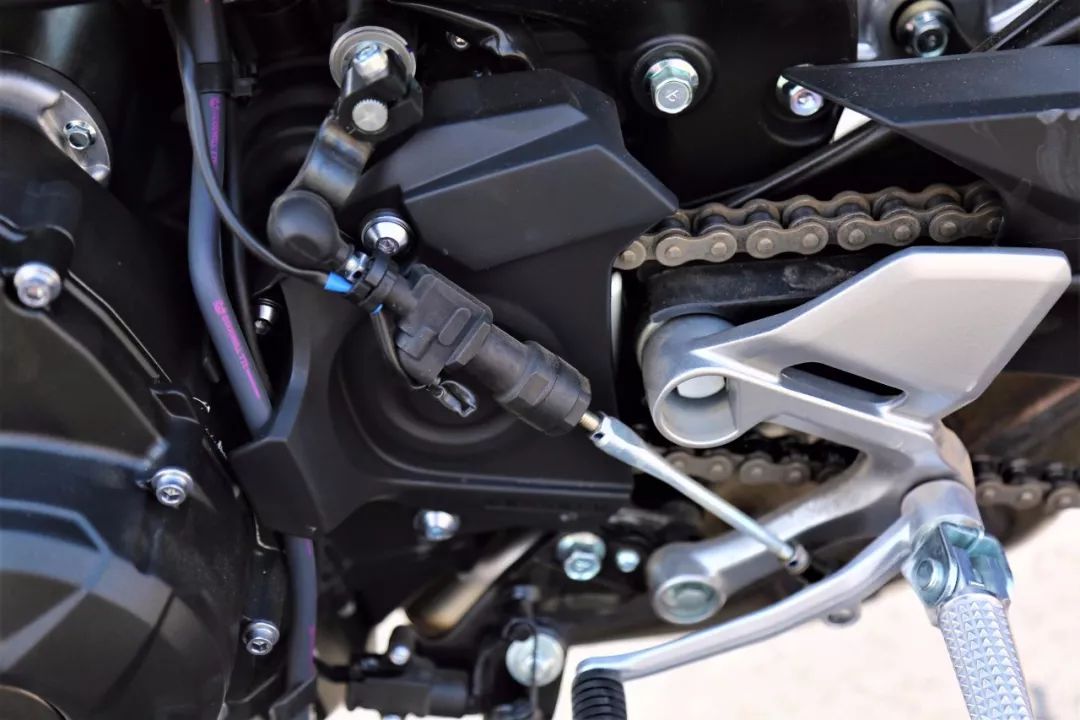 整車的減震系統(tǒng)為全可調(diào)設(shè)計(jì),這是這款車運(yùn)動(dòng)取向的體現(xiàn)之一。當(dāng)天的試駕中我并沒有調(diào)節(jié)前減震,給我的感受在阻尼方面略有些偏軟,比較符合舒適化的城市場(chǎng)景調(diào)校,而后減震則比較適中,相信在調(diào)整過之后會(huì)有不錯(cuò)的運(yùn)動(dòng)表現(xiàn)。整車的制動(dòng)力給人印象深刻,前制動(dòng)有種“撞墻”的感覺,配合下沉的車頭設(shè)計(jì),制動(dòng)過程中給你很強(qiáng)的前傾感,前制動(dòng)的ABS介入很早,這也從側(cè)面體現(xiàn)了這款車制動(dòng)力的強(qiáng)大。