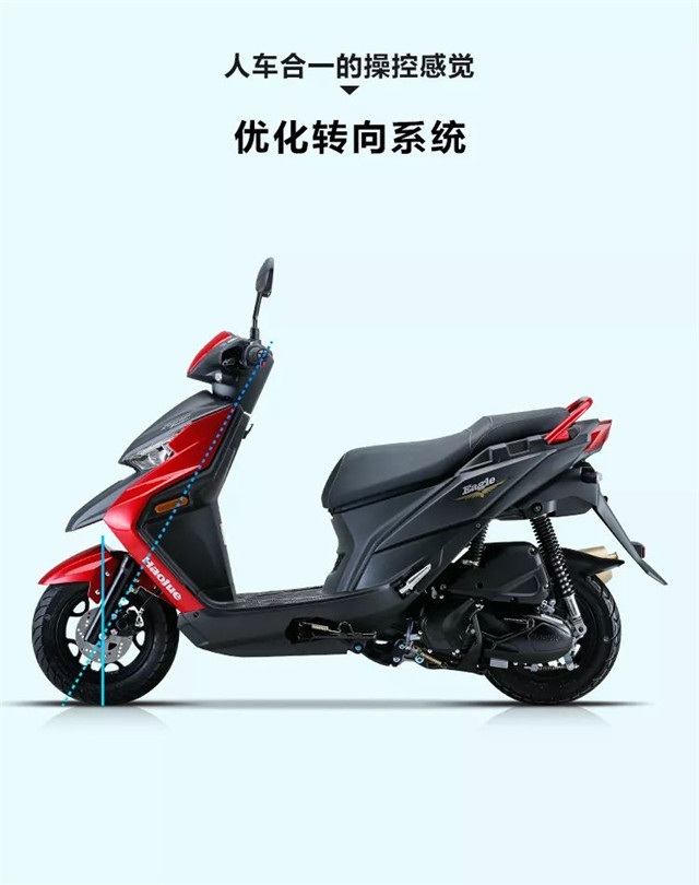 手把加寬、收縮角較小,駕駛時(shí)肘部自然外張;前輪設(shè)計(jì)兼顧輕快感和充分的接地感,獨(dú)具的匠心設(shè)計(jì),實(shí)現(xiàn)了非常輕的轉(zhuǎn)向操作力和富有激情的駕駛體驗(yàn)。精心調(diào)校的減振系統(tǒng),既有快速響應(yīng)性,也能夠有效吸收路面振動(dòng)。不管是壓彎,還是高速飛馳,不管是在擁堵的車流,還是在狹窄的巷道,Super Eagle都樣樣精通。