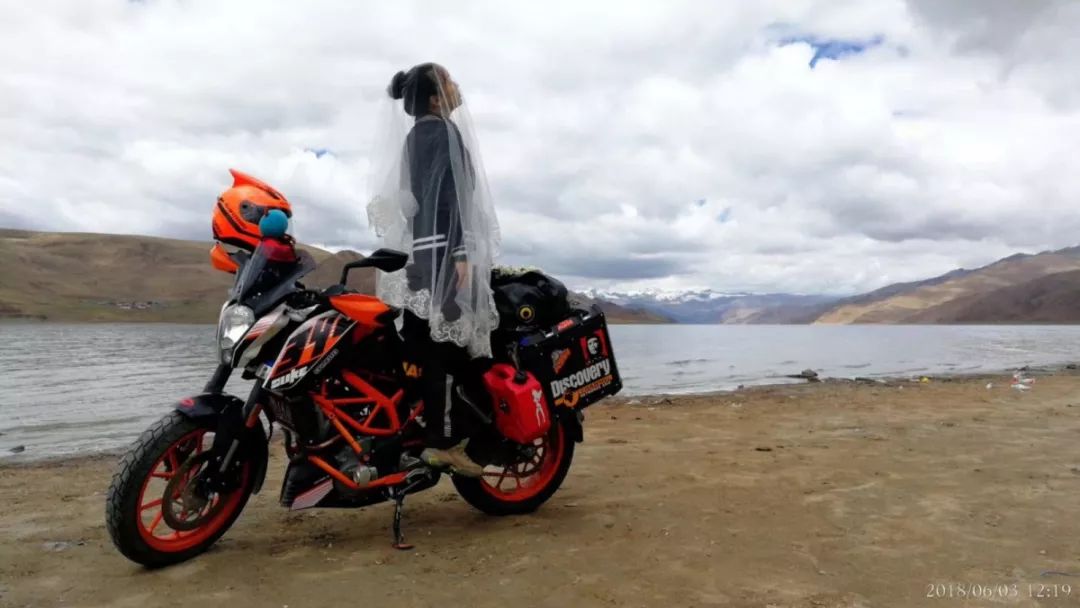 在日記中,咪娜喜歡將陪她進(jìn)藏的390DUKE喚作小夫君,這里面還有一段任性的浪漫故事。從第一次獨(dú)自騎行進(jìn)藏開始,咪娜就做了一個(gè)大膽的事情,每次騎行她會披上頭紗,將這神圣的儀式,在圣地獻(xiàn)給她的畢生最愛——摩托車。