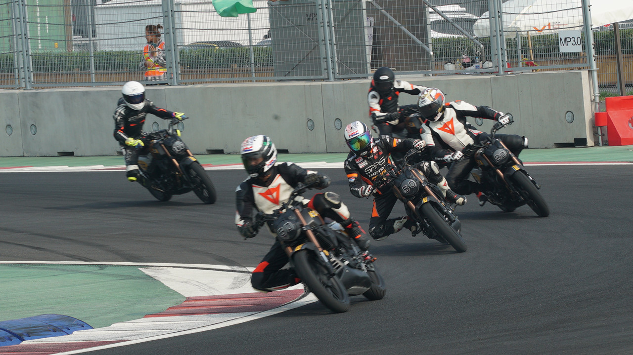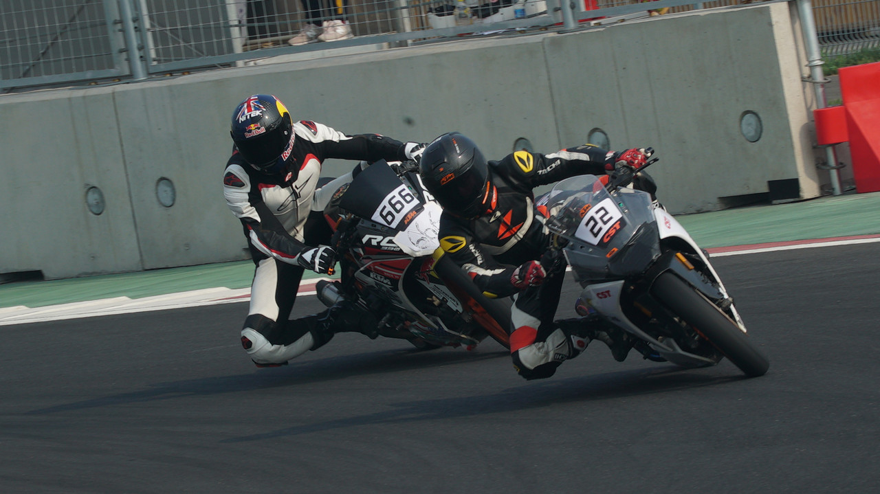 四個(gè)廠隊(duì)統(tǒng)一組,同樣采取了混跑的方式。KTM RC390和諾瑪?shù)讹L(fēng)300分在了一塊,川崎忍者250和力帆KP master(200cc)分在了一起。