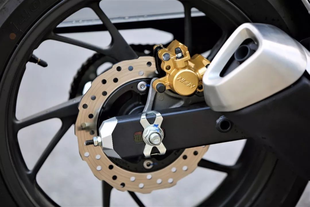 國(guó)四版CBF190R在山路上的改善都源于前減震和電噴系統(tǒng)的變化,前減震的變化不僅讓它在彎中的支撐性更好,也在一定程度上增加了制動(dòng)效率。此前的國(guó)三版后輪經(jīng)常出現(xiàn)抱死現(xiàn)象,一部分原因是由于制動(dòng)時(shí)前減震過(guò)度壓縮導(dǎo)致后輪上抬導(dǎo)致,而國(guó)四版在改進(jìn)了前減震之后,支撐性更好,在制動(dòng)時(shí)能減少后輪的抬升,一定程度增加制動(dòng)效率。