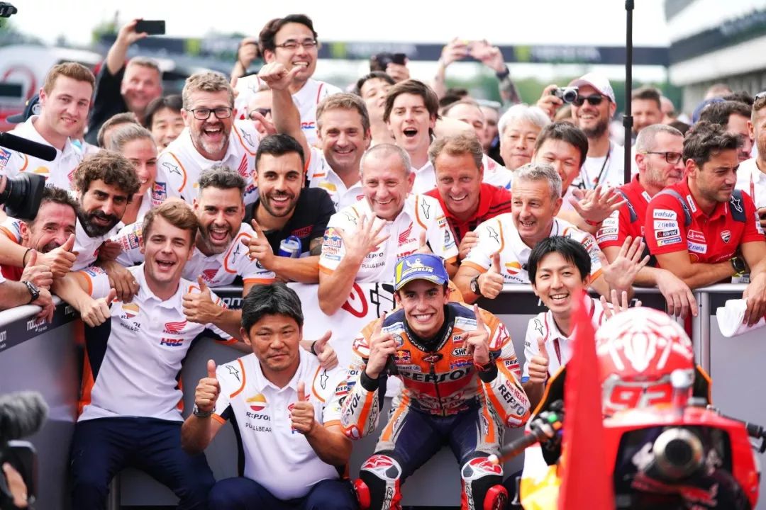 賽后,馬昆斯表示,“ 我從一開(kāi)始就非常專注,因?yàn)橘惖郎线€有一些濕的斑塊,特別是在 T1。我知道、我需要保持著自己的節(jié)奏,因?yàn)?Yamaha 的車手一般都是從比賽的后段開(kāi)始發(fā)力的,他們?cè)跓嵘碇泻軓?qiáng)大。比賽中,我看到 Dovi 在我身后,所以我需要不斷地推動(dòng)賽車。我在第十圈的時(shí)候、收到了一個(gè)小小的警告(閃了一下),那時(shí)因?yàn)楫?dāng)時(shí)我開(kāi)始發(fā)力地推、以試圖拉開(kāi)距離。推遲比賽是最好的決定,因?yàn)橘惖赖臓顩r好壞參半,而且很危險(xiǎn)。一個(gè)瘋狂的周末天氣,但整個(gè) Repsol Honda 車隊(duì)是完美的,幫助我取得了很多的勝利!”