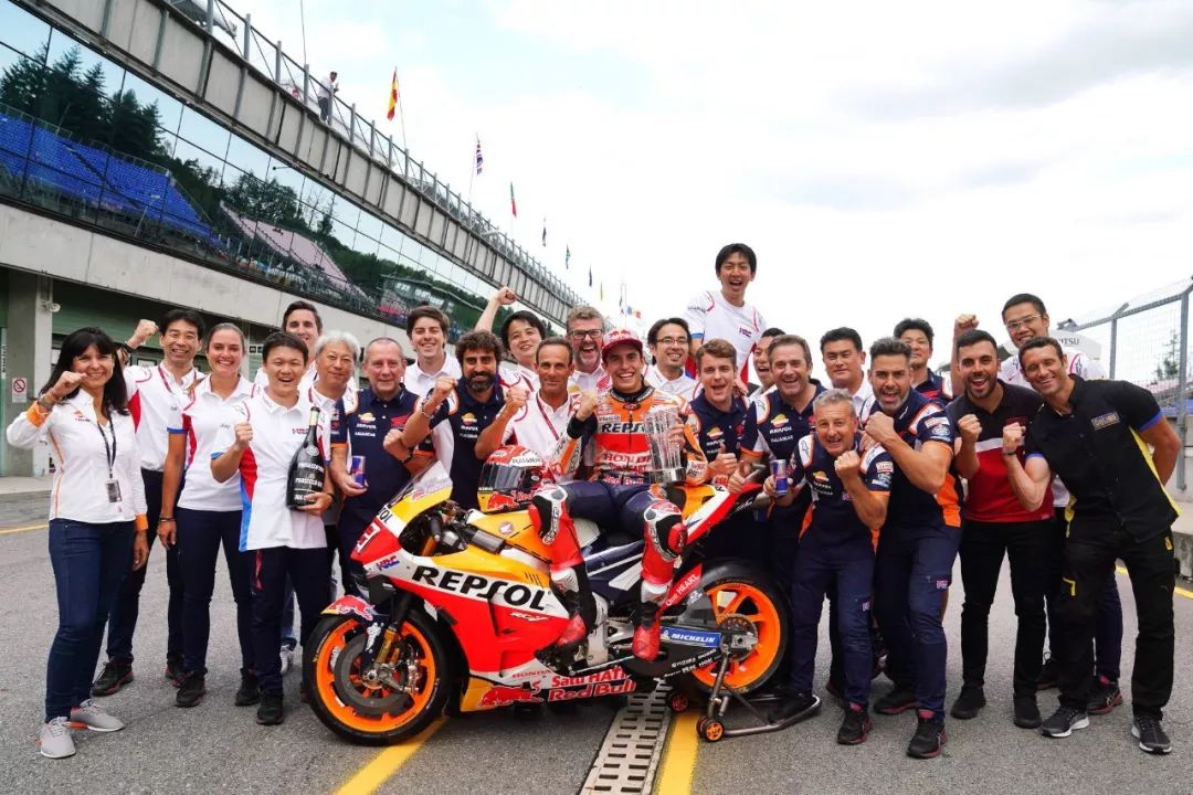 在捷克站取得的勝利,是馬昆斯在 MotoGP 級(jí)別取得的第 50 個(gè)分站冠軍。到目前為止,他在 2019 賽季、以平均每場(chǎng)比賽獲得 21 分(第十站捷克之后,他在積分榜上有 210 分)暫居榜首。而在贏得了 50 場(chǎng)頂級(jí)賽事的勝利之后,他與羅斯(Valentino Rossi)、杜漢(Mick Doohan)、阿戈斯蒂尼(Giacomo Agostini)一起,成為了 MotoGP/WGP 中的精英級(jí)車手。