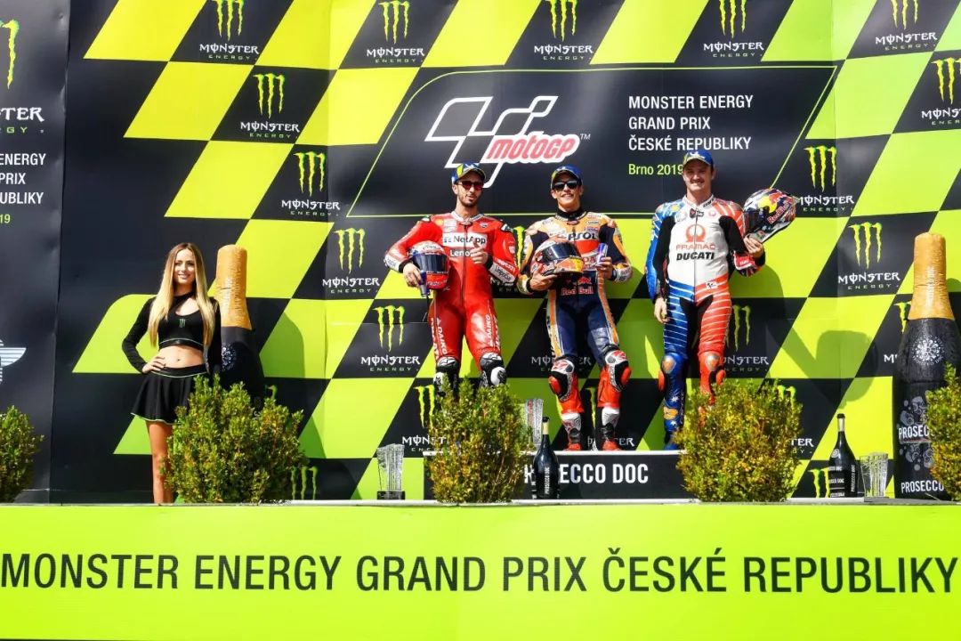 比賽過(guò)半之后,馬昆斯開(kāi)始發(fā)力,逐漸將距離拉開(kāi)到了一個(gè)“安全”的范圍,最終順利奪得了捷克站的冠軍。杜維斯奧索落后 2 秒多、獲得了第二,本站的另一個(gè)亮點(diǎn),Pramac 本馬車隊(duì)的米勒奪得了頒獎(jiǎng)臺(tái)上的最后一個(gè)位置、拿到了第三。