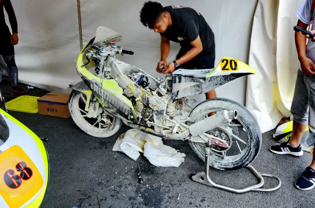第一節(jié)比賽,奪得排頭位出賽的林輝與陳鵬基發(fā)生碰撞,雙雙退出了比賽,陳鵬基的賽車被溢出的汽油點燃而燒毀。經(jīng)過機械師一夜的忙碌,林輝與陳鵬基參與了第二節(jié)比賽的爭奪。盡管賽車先后出現(xiàn)故障,但最終林輝仍奪得了 300 cc 組的第四、陳鵬基奪得了一席第五。