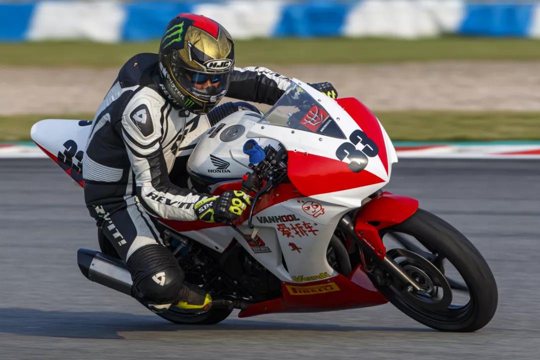 而賽道英雄車手“光頭佬”何偉航亦首次參加摩托車賽,他表示這是一次勇敢的嘗試。通過賽前幾天的練習(xí),他算是初步掌握了如何駕馭比賽規(guī)格的摩托車,其中最難的就是過彎,感覺像是在飛一樣,跟賽道英雄很不一樣,需要克服內(nèi)心的強(qiáng)烈恐懼感。這次比賽參與為主,以后他會(huì)考慮參加泛珠的速度英雄比賽。