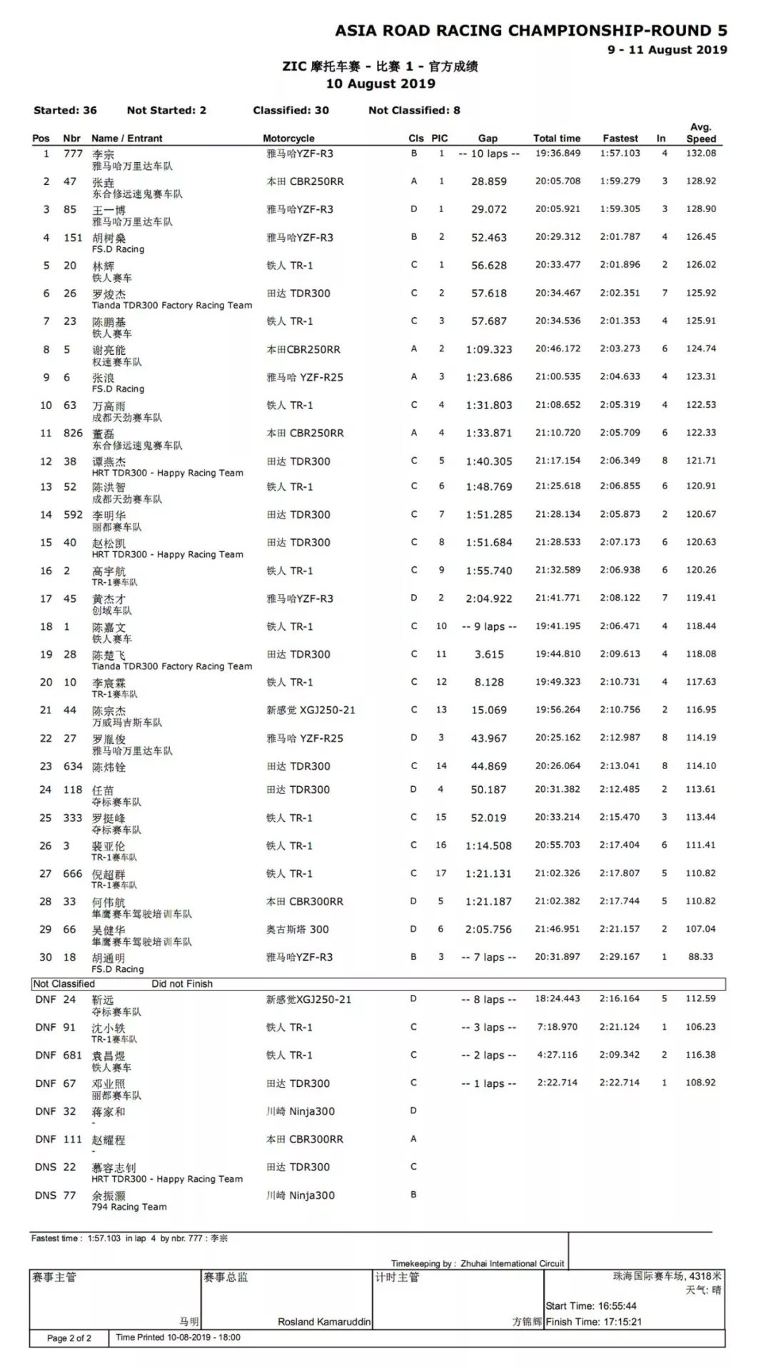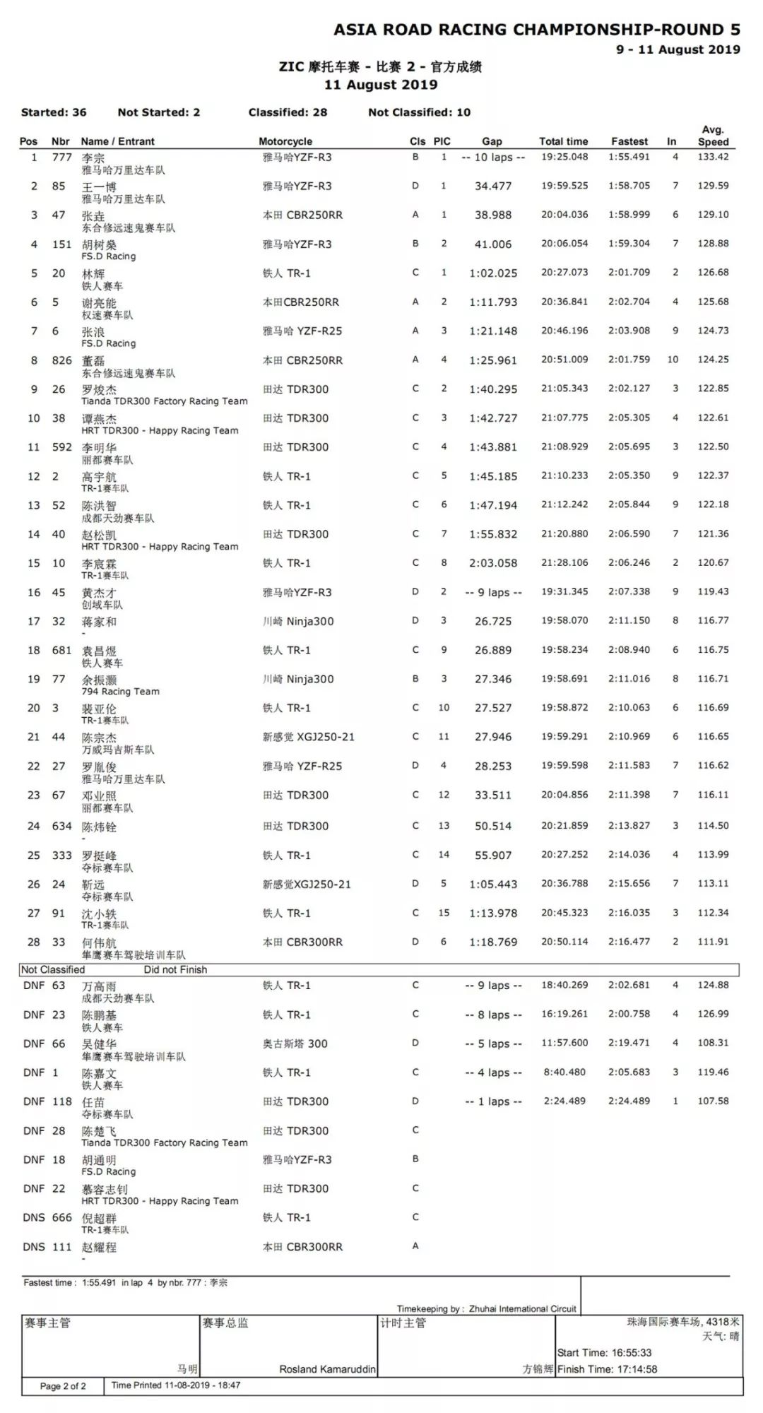2019ARRC亞洲公路錦標(biāo)賽珠海站:ZIC 摩托車賽成績