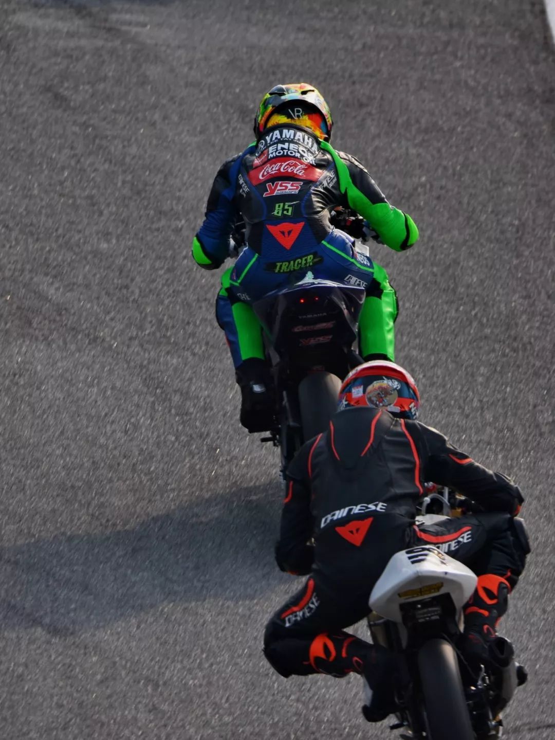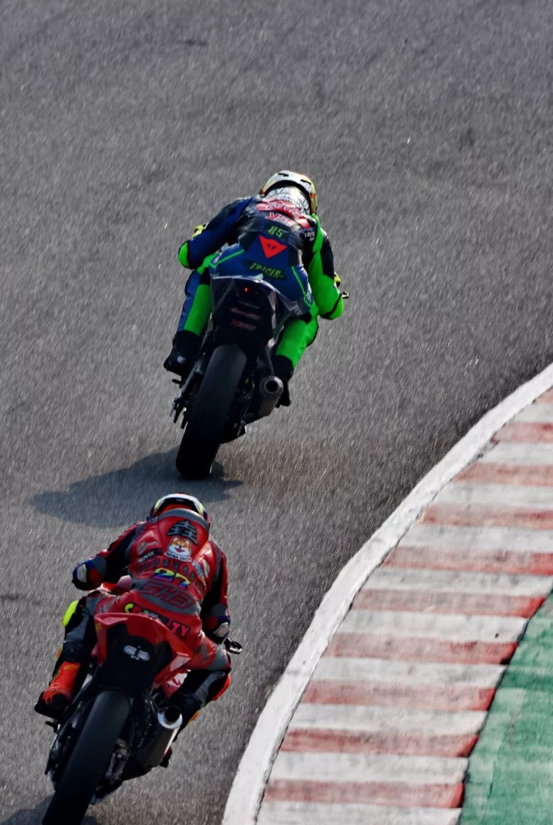 到比賽的中段,前面的三人在各自尋找的目標(biāo)。而在較后的位置,駕駛 151 號車的胡樹燊(Yamaha YZF-R3)前不著村、后不著店地翻過一個又一個的落后車手。他的后面,是 23 號車的陳鵬基(鐵人 TR-1)、20 號車的林輝(鐵人 TR-1)、26 號車的羅焌杰(田達(dá) TDR300)的國產(chǎn)車大戰(zhàn)。