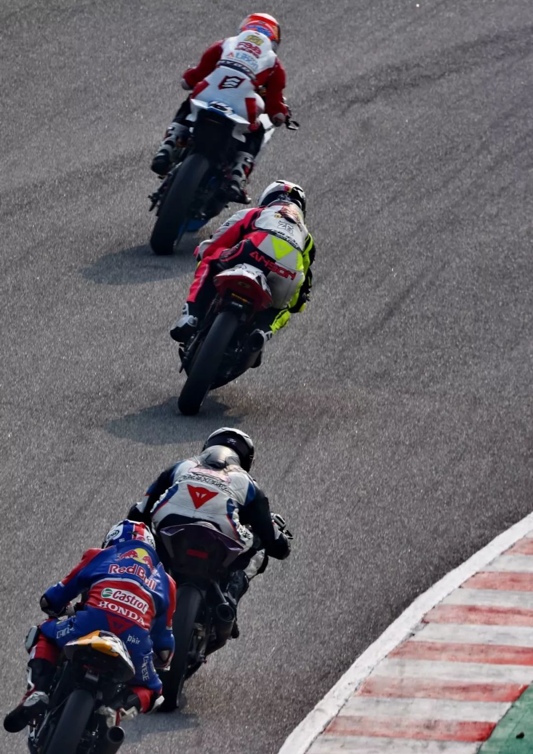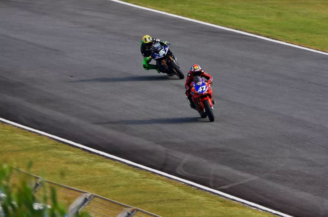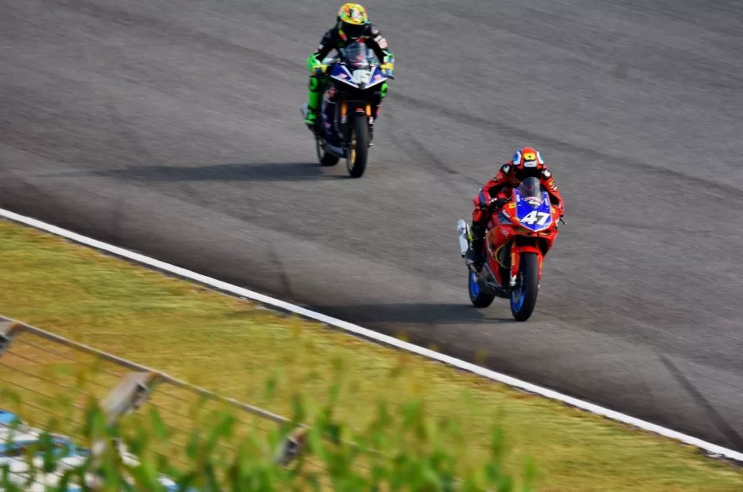 第一節(jié)比賽的賽程是 10 圈。與 ARRC 中的 UB150、AP250 級別相比,ZIC 級別前列位置的爭奪明顯平淡得多,李宗在起步后就搶到了領(lǐng)先的位置、并絕塵而去,剩下王一博與駕駛 47 號車的張垚(Honda CBR250RR)來了一回全場的追逐。