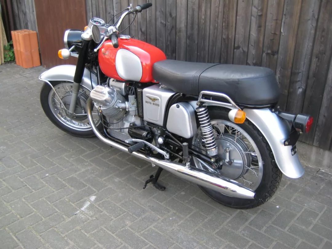上個世紀(jì)50年代末期,Moto Guzzi已經(jīng)研發(fā)出風(fēng)冷、90°夾角、橫置V型雙缸發(fā)動機,成為新一代動力平臺。1967年,Moto Guzzi的天才工程師朱里奧以這臺橫置V型雙缸為動力核心,推出了意大利本土的首臺高性能摩托車V7,V是指橫置V型雙缸,7則是指排氣量高達(dá)703cc,這在當(dāng)時的意大利可算是一項紀(jì)錄。強勁的動力、高度的可靠性、獨特的風(fēng)格,讓V7獲得了巨大的成功,不僅在意大利廣為流行,而且遠(yuǎn)銷海外,在世界各地掀起聲勢浩大的Moto Guzzi旋風(fēng)。1969 年,MotoGuzzi將橫置V型雙缸的排氣量從703cc擴(kuò)大至 757cc,顯著提升了動力性能。由于新的757cc V型雙缸的動力強大,Moto Guzzi推出了V7 Special,并在1969年6月-10月間的蒙扎賽道上數(shù)次打破紀(jì)錄。
