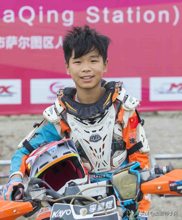 車手李昊煜11歲。他3歲半時開始學(xué)習(xí)摩托車駕駛,5歲時參加過全國摩托車大賽,6歲時一舉拿下2014全國摩托車越野錦標(biāo)賽國產(chǎn)110CC青少年組個人第7名。
