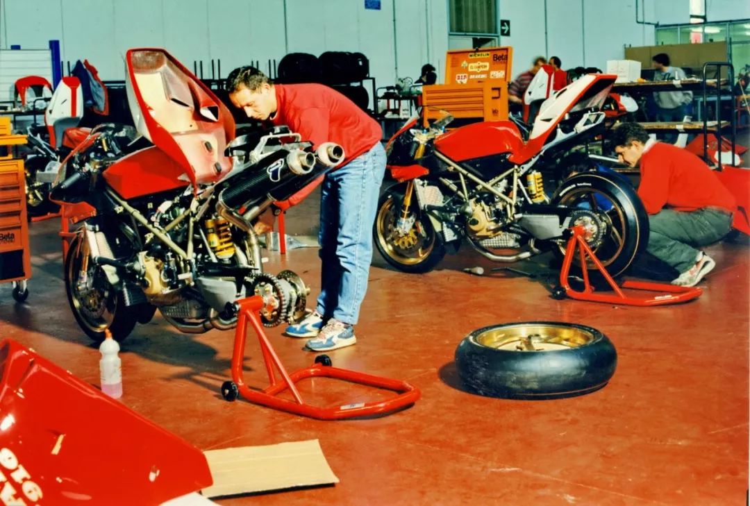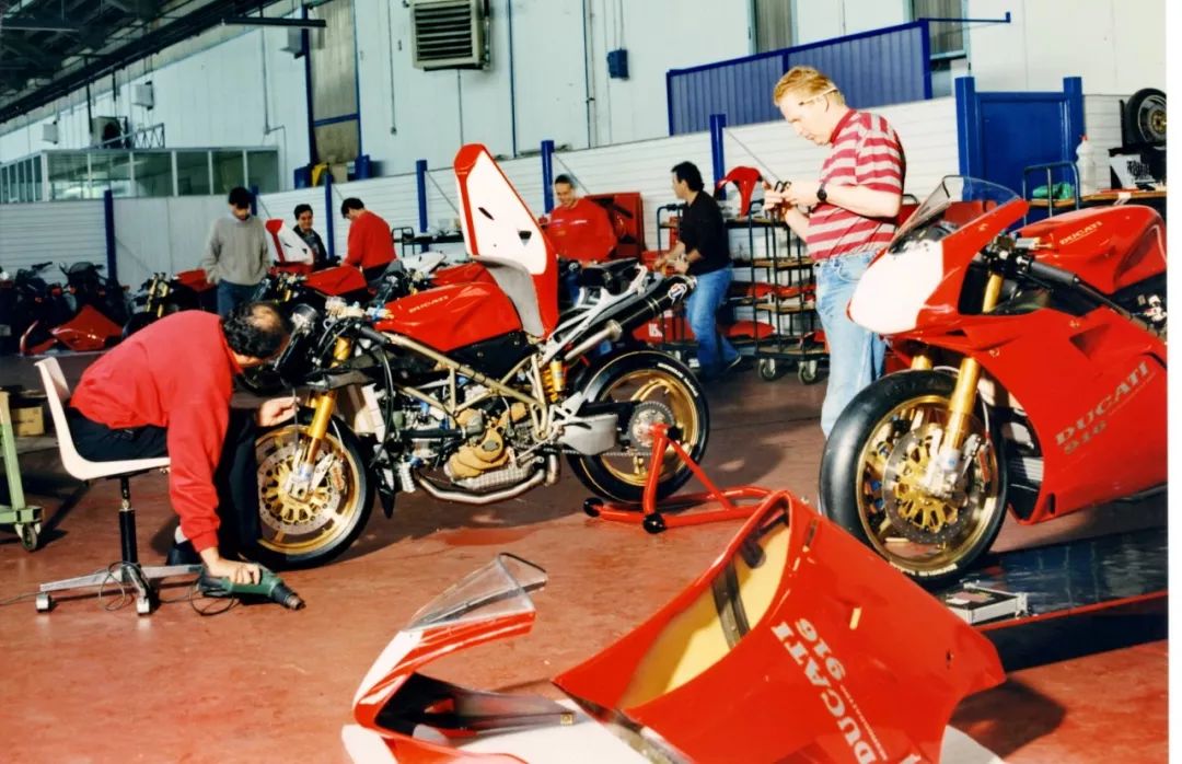 下圖:916 的原型車,以及杜卡迪 WSB 工廠車隊的工場。