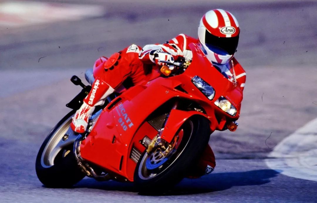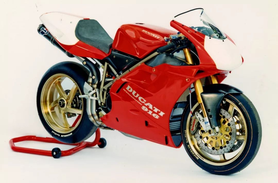 杜卡迪 916 在 1994 年首次亮相,是著名的已故設(shè)計師坦布里尼(Massimo Tamburini)的杰作之一。外媒對 916 的設(shè)計評語,是它徹底改變了摩托車的設(shè)計世界,該設(shè)計有著優(yōu)雅風(fēng)格、輕便和緊湊得令人難以置信的創(chuàng)新,被許多人認(rèn)為是有史以來最性感和最具標(biāo)志性的跑車。