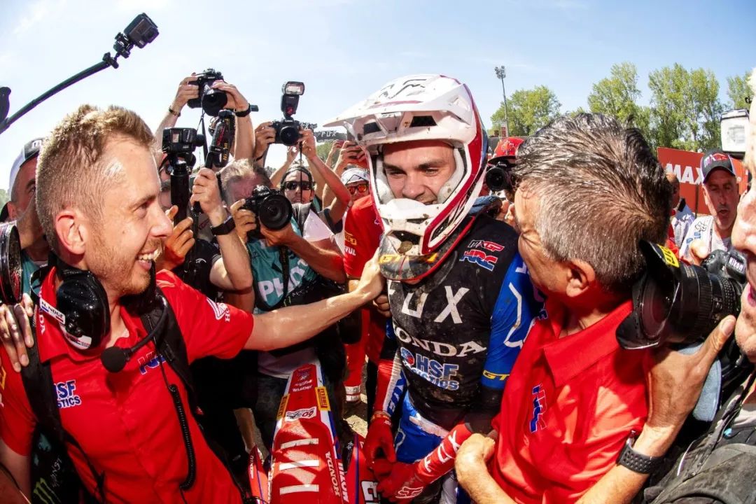 賽后、蓋沙表示,“ 贏得第三次世界錦標賽的冠軍真是一種奇妙的感覺。在經歷了兩年艱難的比賽之后,以及在今年早些時候戰(zhàn)勝困難的一輪(第五站的意大利 Mantova),能夠成為冠軍真的是非常、非常偉大。我非常感謝 HRC,無論是在比賽中還是在日本,他們在這段時間里,無論好壞都支持我,這是我在雨篷下的一個真正的家庭,我真的很感激能和他們一起合作得這么久。我們今年都非常努力地改進自己和 CRF450RW 賽車,讓它工作得非常出色。我們今年的開局很好,沒有任何問題,每次踏上賽道,無論情況如何,我都覺得很舒服。我想努力地去說更多(感謝大家的言語),但這真的是一次難以置信的經歷,我很高興斯洛文尼亞的很多粉絲也能出來見證這一時刻。感謝所有和我一起踏上這段旅程的人,粉絲、車隊成員,所有的人,這對我來說意義重大。”