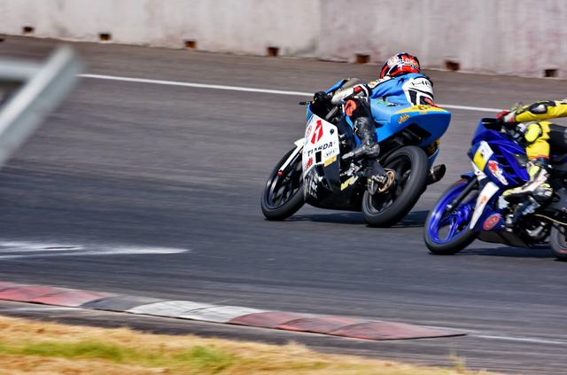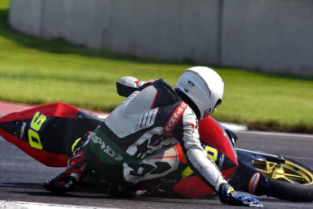 最終,安峻達(dá)奪得了第一節(jié)比賽的全場(chǎng)第一,同時(shí)也奪得了 250 cc 級(jí)別的冠軍。摔車的黃劍鋒最終拿到了全場(chǎng)第二、250 cc 級(jí)別的亞軍,落后頭車約 16 秒,也就是說(shuō)從摔車到扶起賽車重返跑道繼續(xù)比賽,他只用了十幾秒(摔車前、他的領(lǐng)先優(yōu)勢(shì)大概是 1 秒)。隨后而至的羅焌杰、落后頭車約 18 秒,奪得了全場(chǎng)第三、300 cc 級(jí)別的冠軍。
