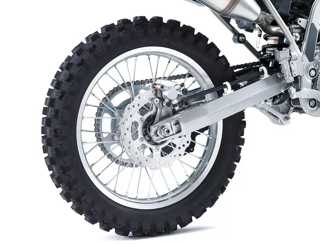 車體采用一副管狀的車架,叉芯口徑達(dá) 43 mm 的倒立式前叉,配備了電啟動(dòng)裝置,前 21、后 18 英寸的鋼線式輪框。