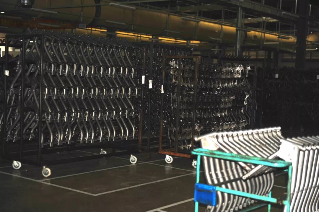 碩大的焊接車間里,不只是純粹的焊接,還有工裝維修區(qū)——車架的焊接精度事關重大,因此對焊接設備的工況要求極其苛刻。為杜絕工具在使用中因磨損導致的偏差,每一個批次的生產(chǎn)完成后,技術人員就會對工具進行檢測和調試;新員工焊接實習區(qū)——新員工在此進行上崗前的技能培訓和實習,合格后才有資格站在工位上。