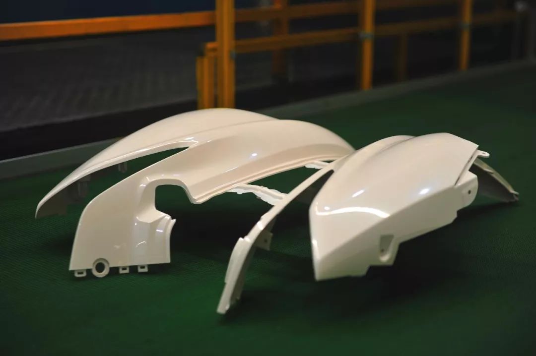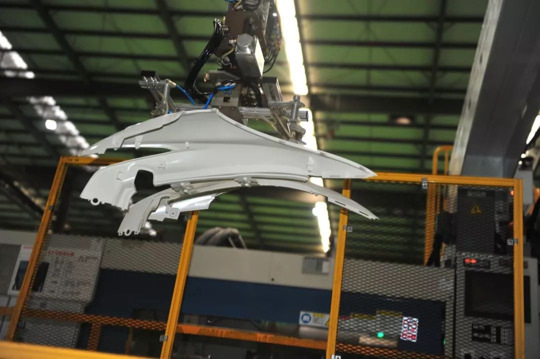 繼續(xù)往前走就是注塑車間了。在這里,你會看到龐大的進口三菱注塑機,靈巧的機械手臂在你眼前揮舞,將一只只成品注塑件放到傳送皮帶上。優(yōu)質原料加上業(yè)界頂級進口設備,讓一次成型的注塑件規(guī)整光滑,表面光亮如經(jīng)過精細的噴涂。事實上,這些車體覆蓋件還只是半成品,還要在質檢后送往噴涂車間進行與車身配色一致的涂裝和裝飾……