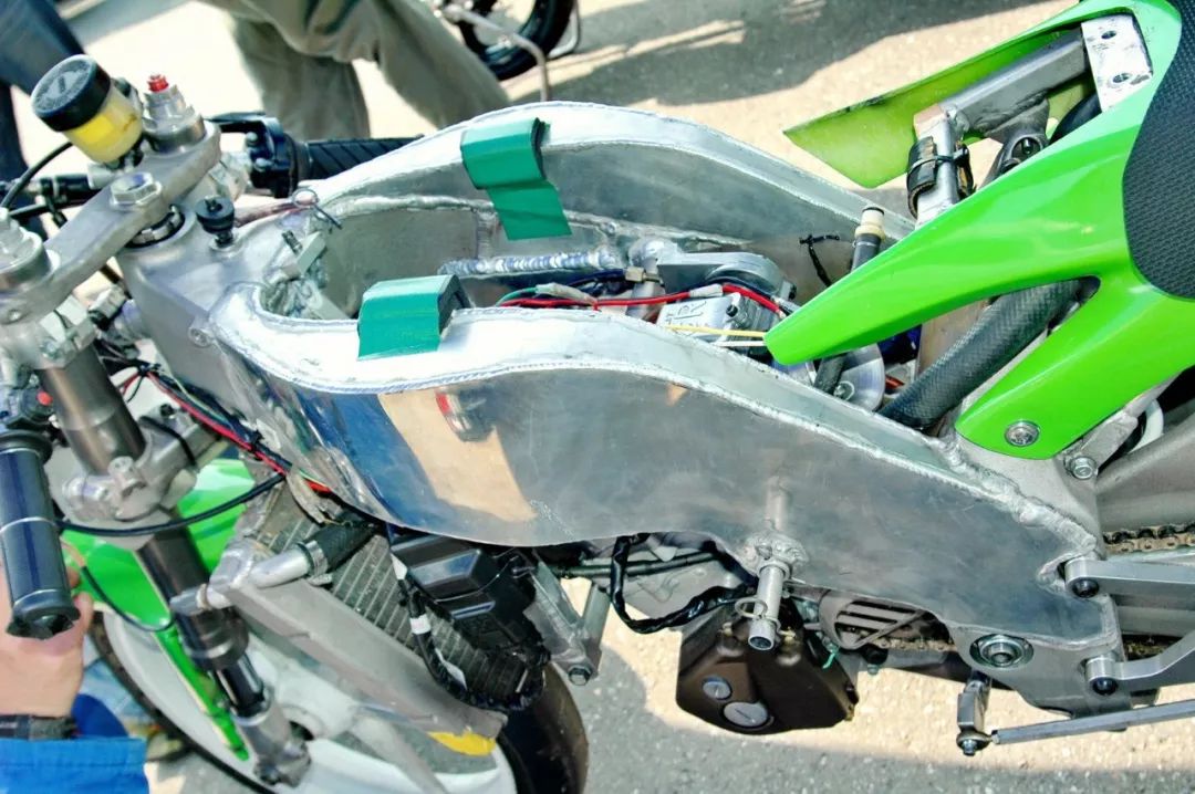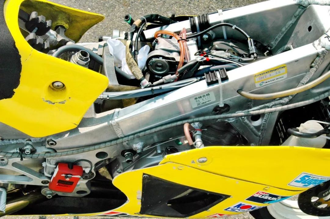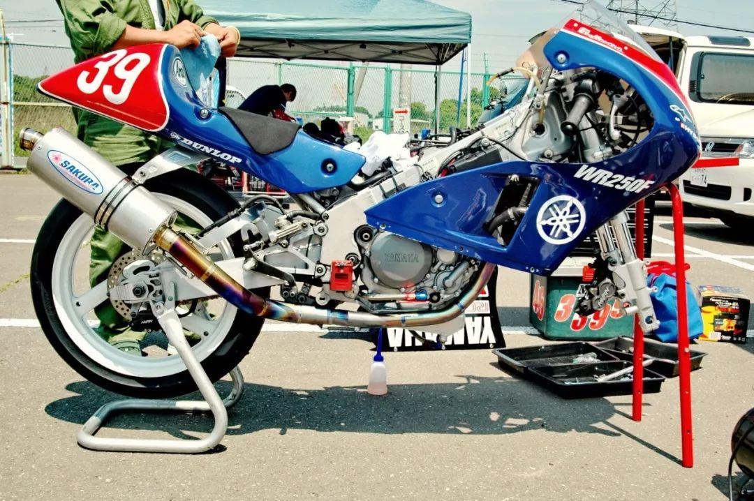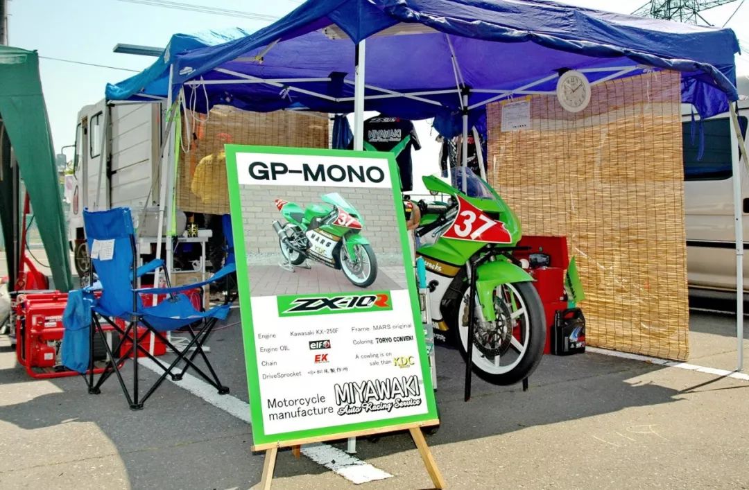 下面的圖片,MFJ 2007 全日本道路錦標(biāo)賽、鈴鹿站,以 Kawasaki KX250F(類似于現(xiàn)在的 KX250)發(fā)動機作為動力來源的 GP Mono 賽車。