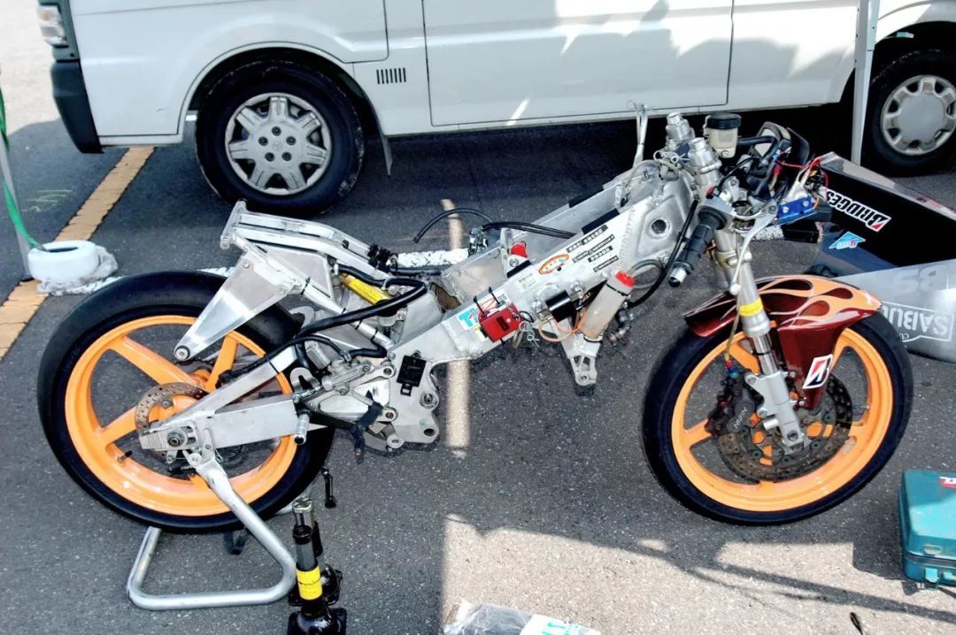 下面的圖片,MFJ 2019 全日本道路錦標(biāo)賽、J-GP3 級別,當(dāng)?shù)馗难b店制作的 PRCS3D 賽車,但該車在本質(zhì)上、仍是來自 HRC 的平臺,經(jīng)過了再加工而成。