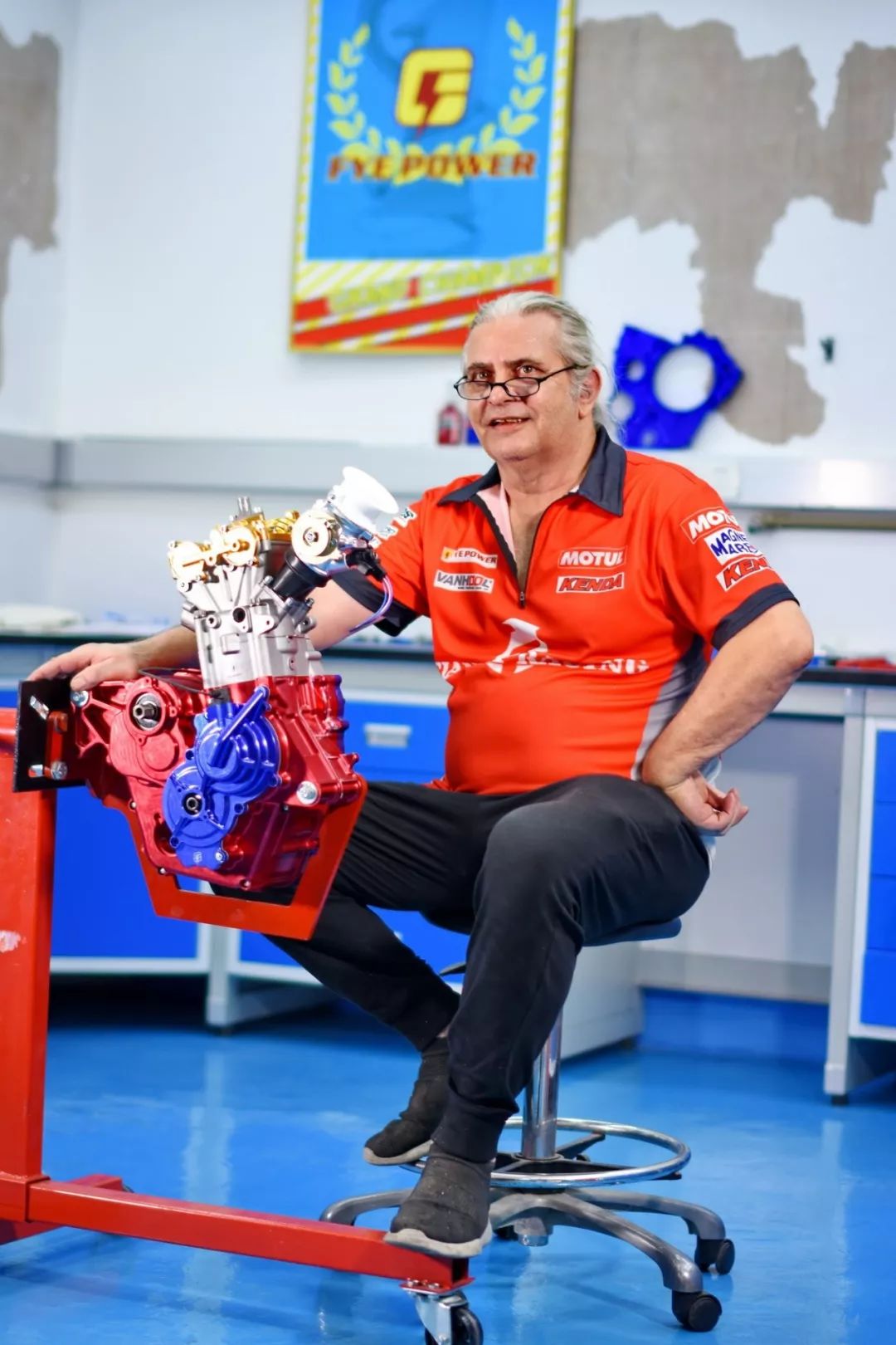 下面的圖片,飛羽動力的主設(shè)計工程師兼 CEO 吳尤利(Ulrich Voelkel)、與飛羽 Moto3 動力單元的工程原型機。