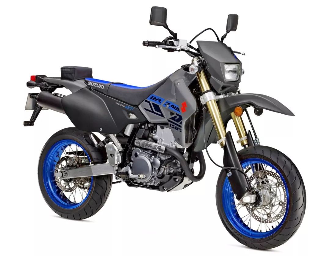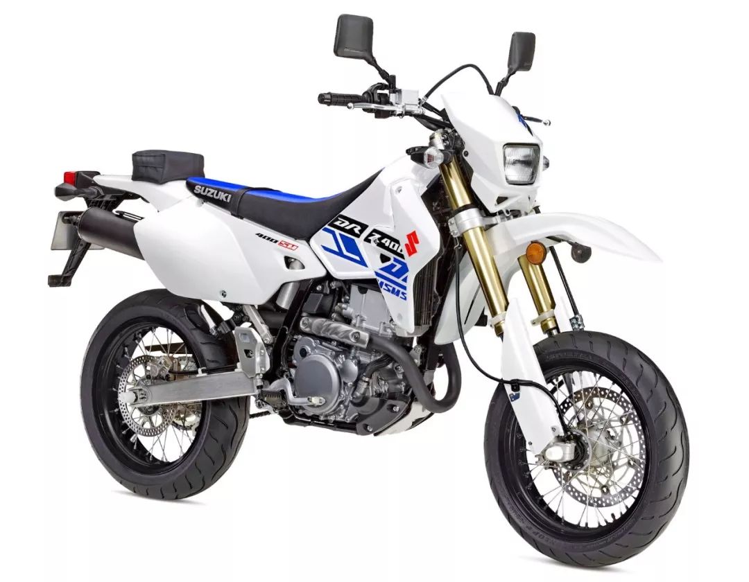 與 DR-Z400S 同平臺(tái)的公路越野(Supermoto,也稱之為公路滑胎)DR-Z400SM,同樣采用了化油器,但換裝了倒立式的前叉、前后 17 英寸直徑的車輪,公路型的輪胎。